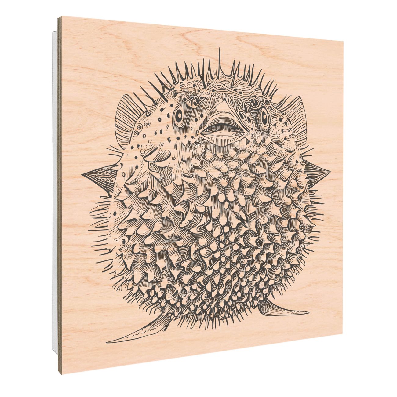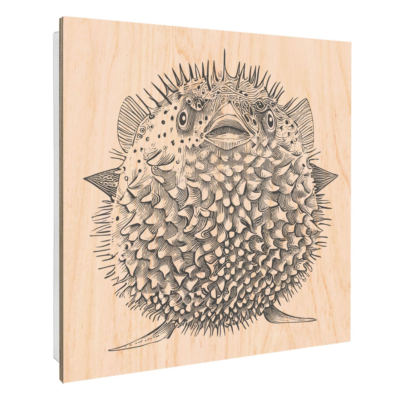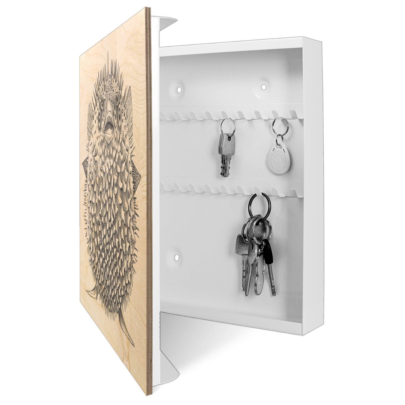 Schlüsselkasten mit Holzfront - Design Schlüsselbox Motiv Kugelfisch 2