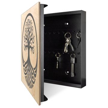 Schlüsselkasten mit Holzfront - Design Schlüsselbox Motiv Lebensbaum Silhouette 2