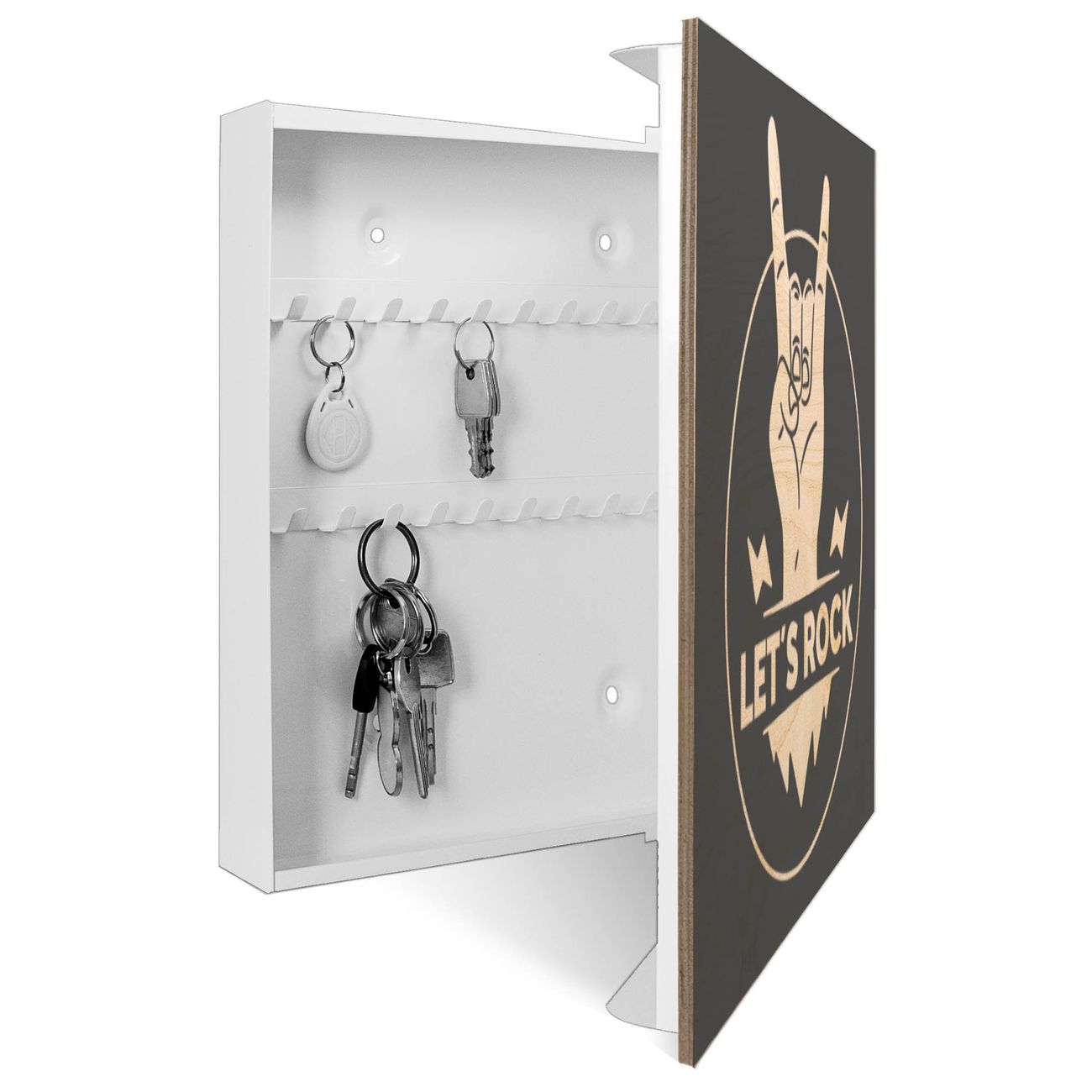 Schlüsselkasten mit Holzfront - Design Schlüsselbox Motiv Let's Rock