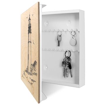 Schlüsselkasten mit Holzfront - Design Schlüsselbox Motiv Leuchtturm 9