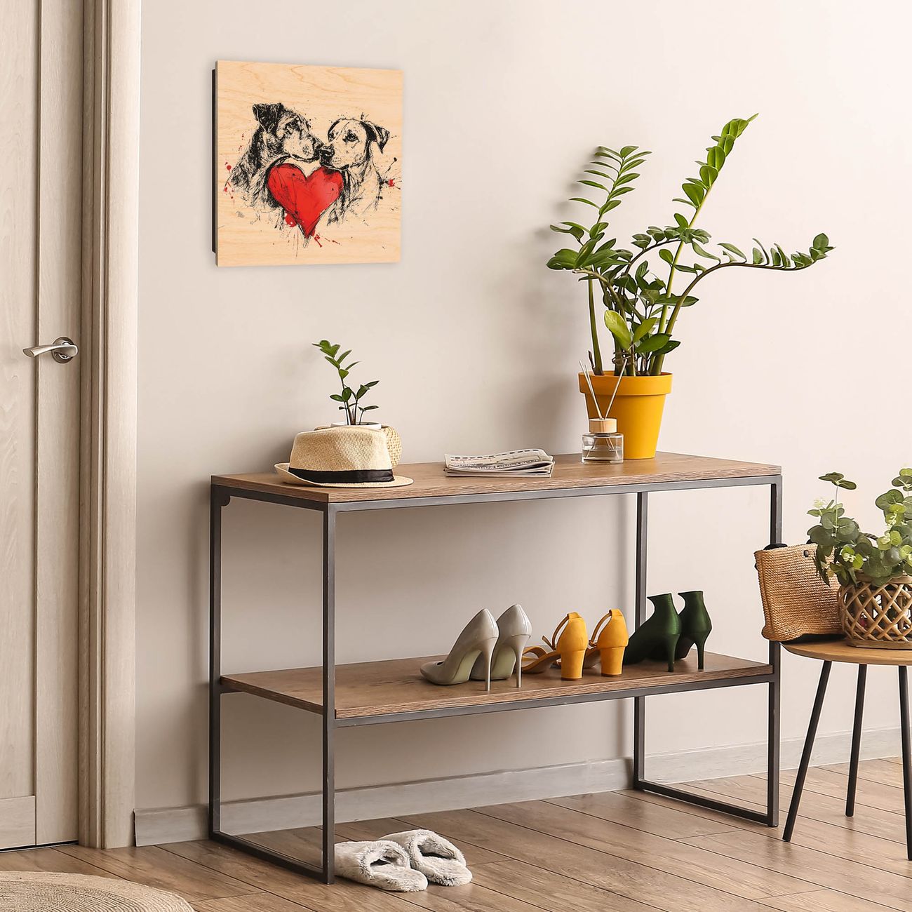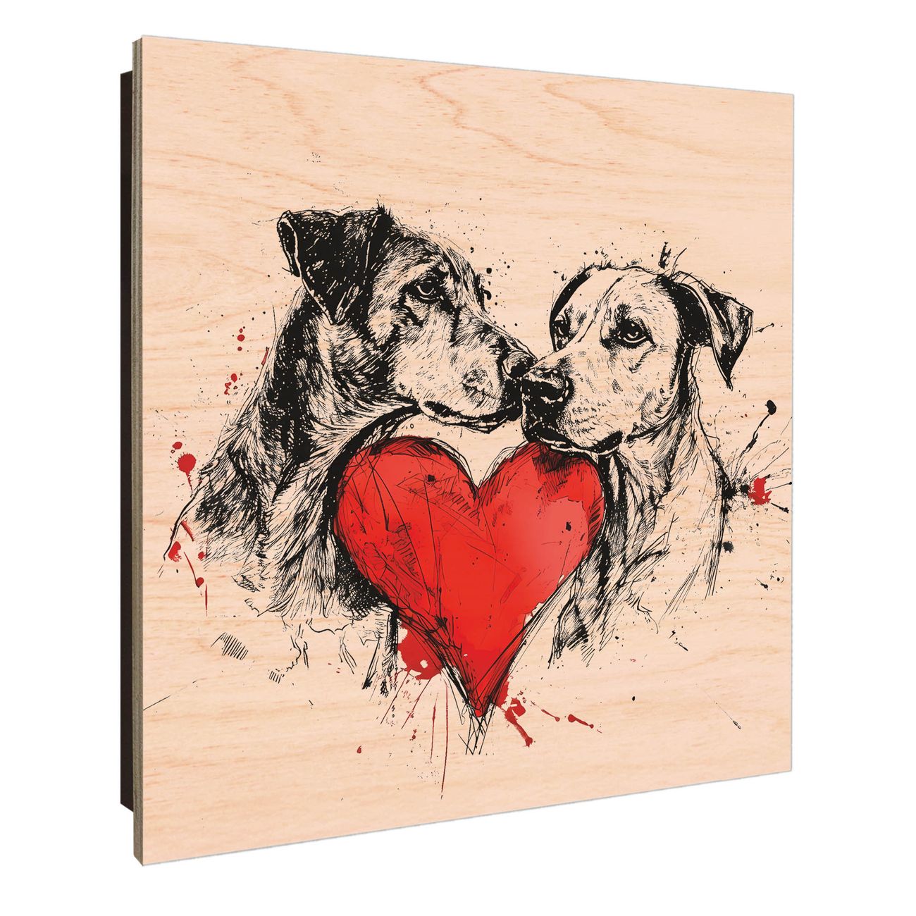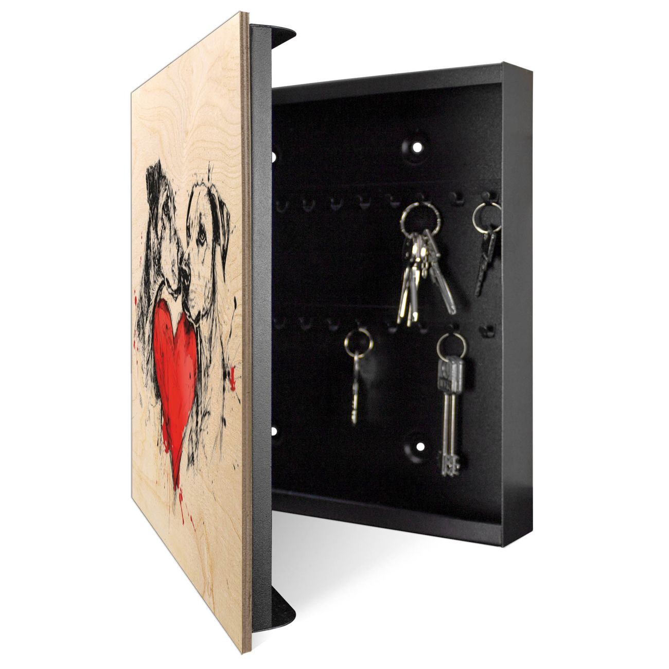 Schlüsselkasten mit Holzfront - Design Schlüsselbox Motiv Liebende Hunde 2