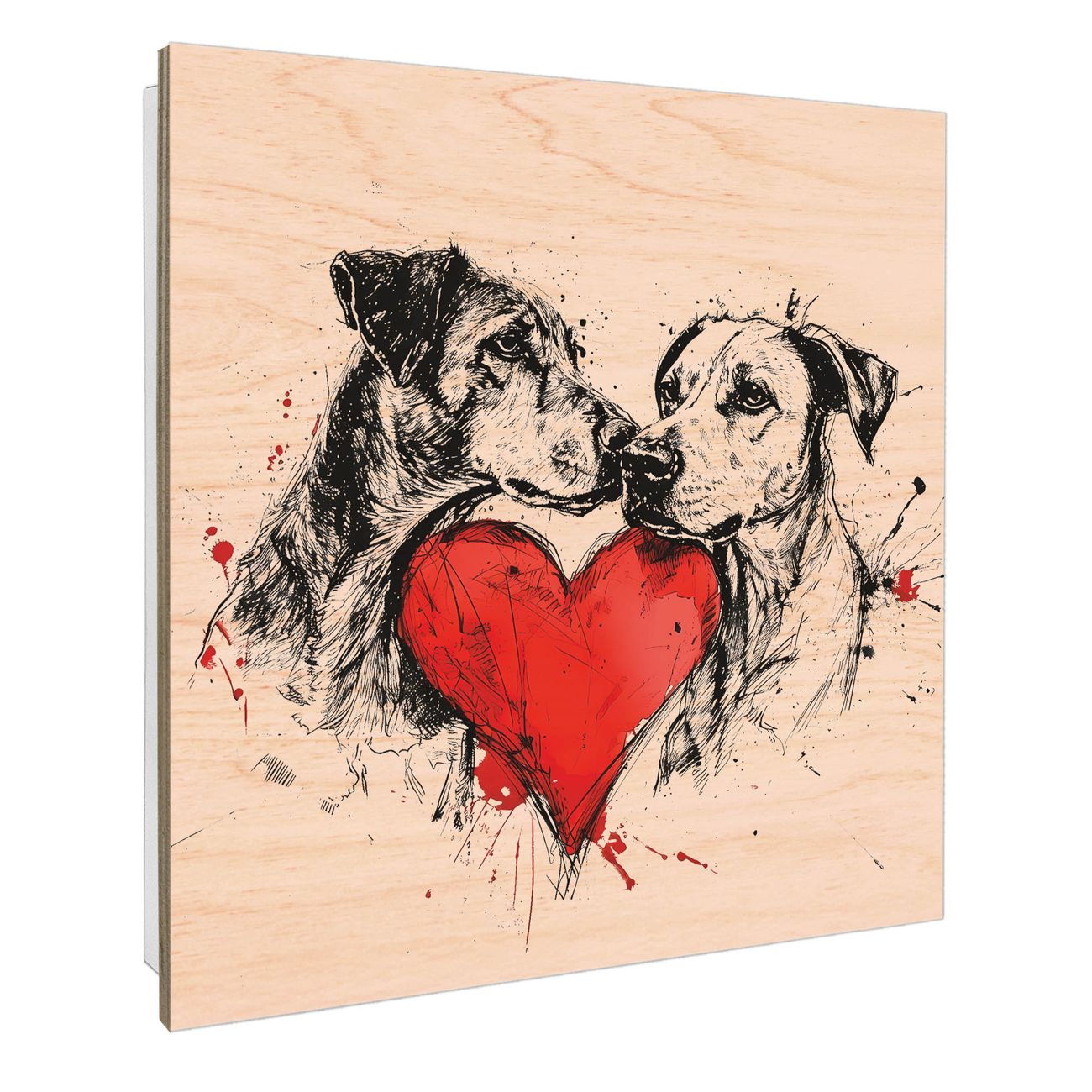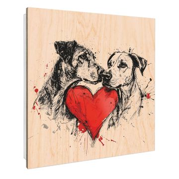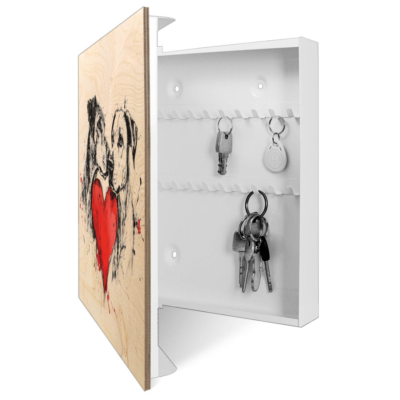 Schlüsselkasten mit Holzfront - Design Schlüsselbox Motiv Hunde mit Herz