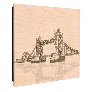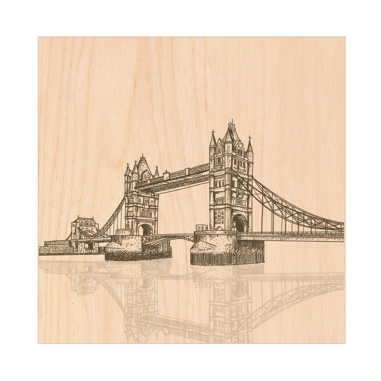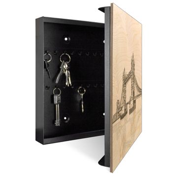 Schlüsselkasten mit Holzfront - Design Schlüsselbox Motiv London Brücke Illustration