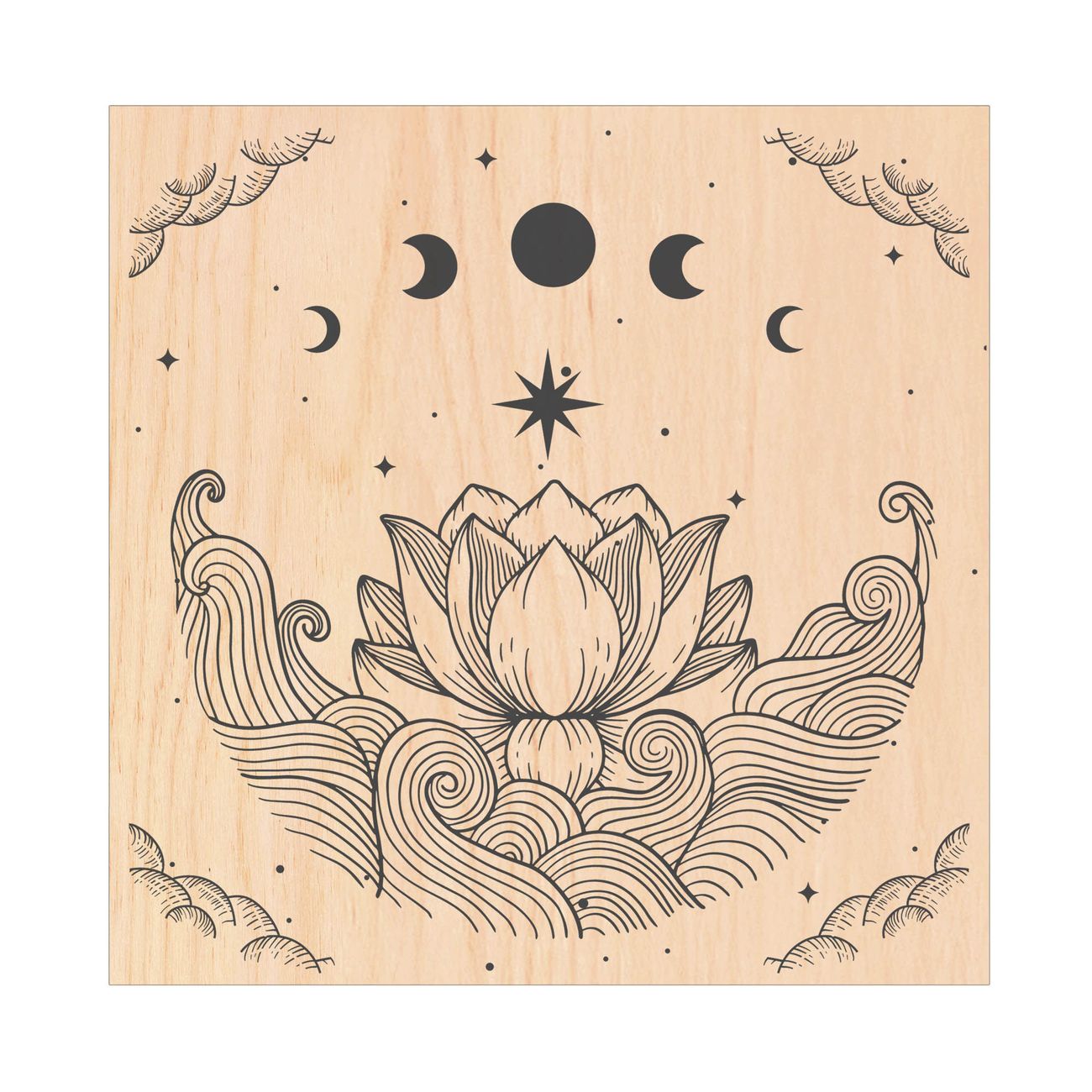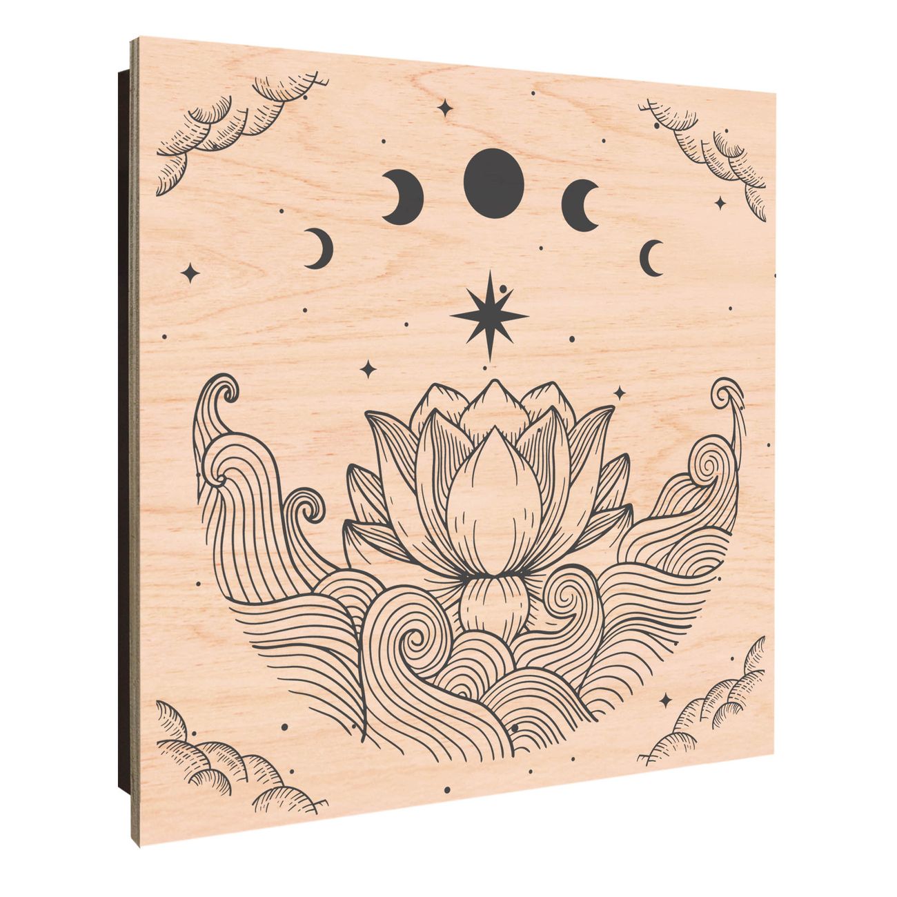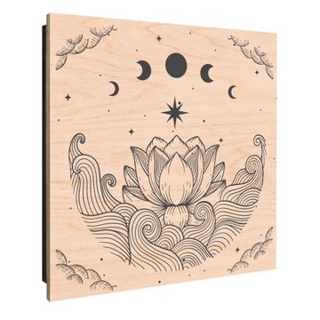 Schlüsselkasten mit Holzfront - Design Schlüsselbox Motiv Lotus und Mondphasen 2