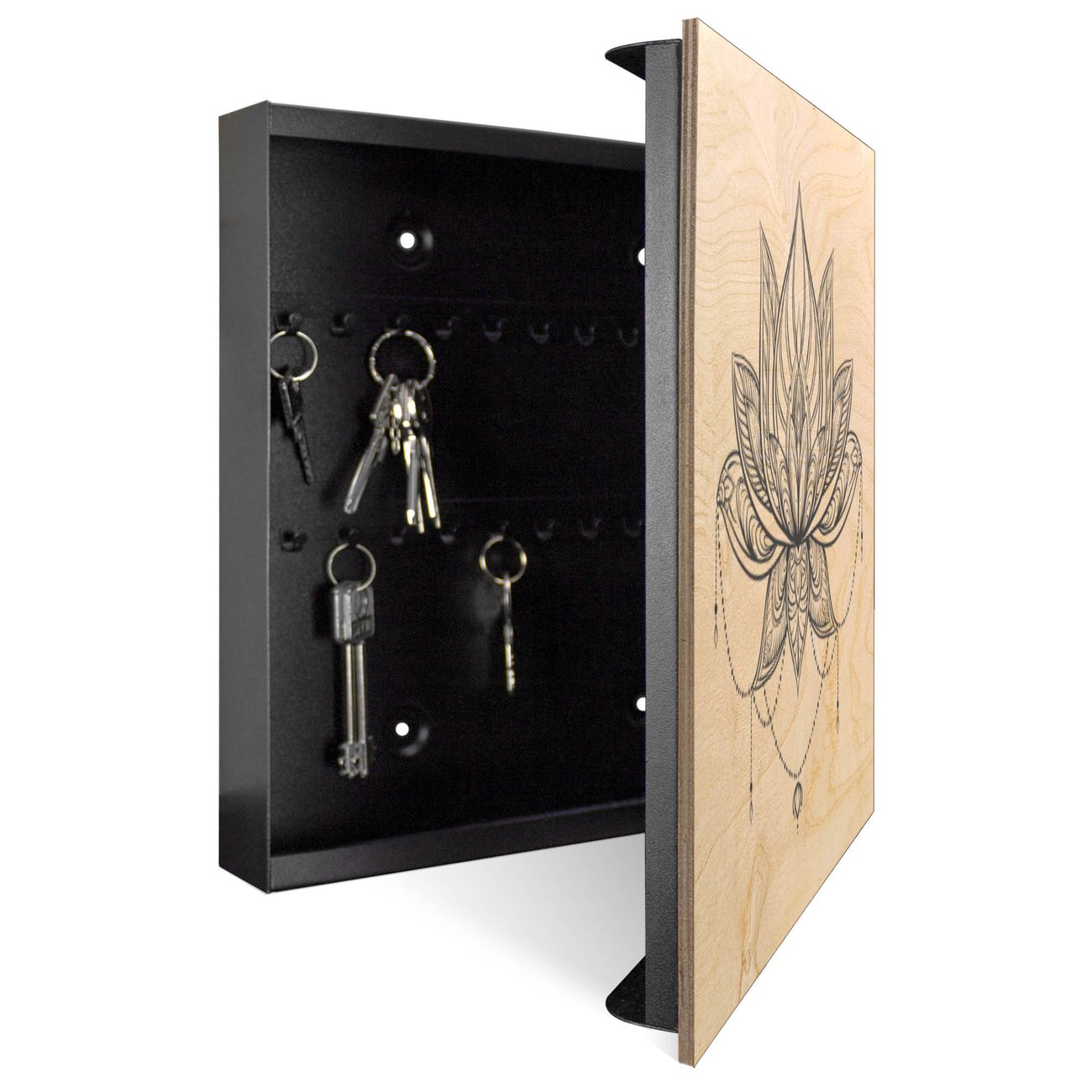 Schlüsselkasten mit Holzfront - Design Schlüsselbox Motiv Lotusblüte 7