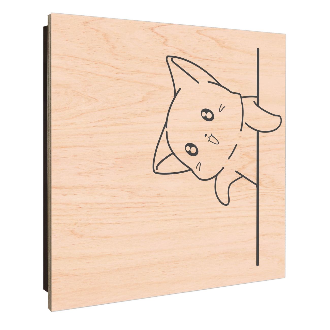 Schlüsselkasten mit Holzfront - Design Schlüsselbox Motiv Lustige Katze am Rand