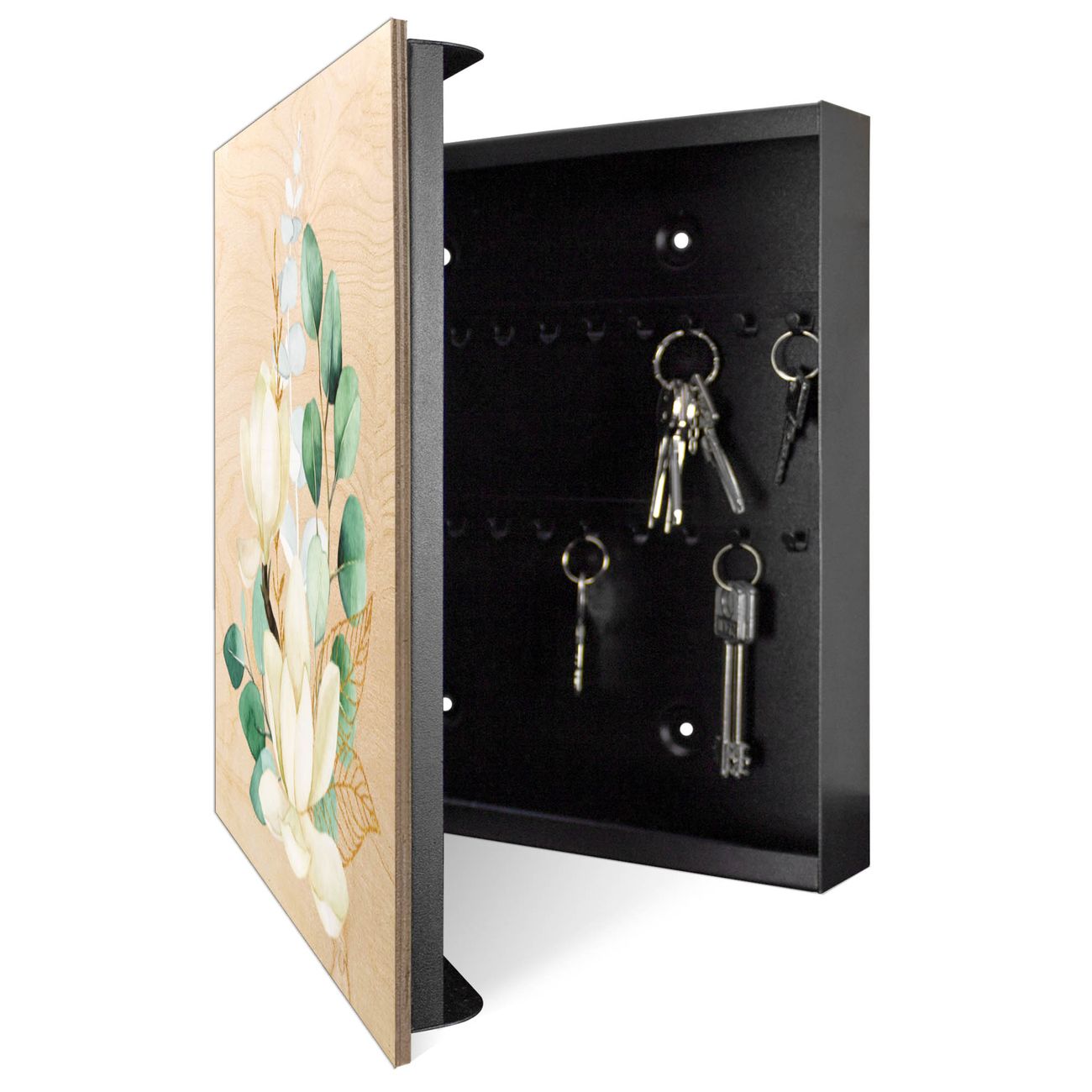 Schlüsselkasten mit Holzfront - Design Schlüsselbox Motiv Magnolienpoesie