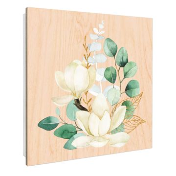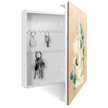 Schlüsselkasten mit Holzfront - Design Schlüsselbox Motiv Magnolienpoesie