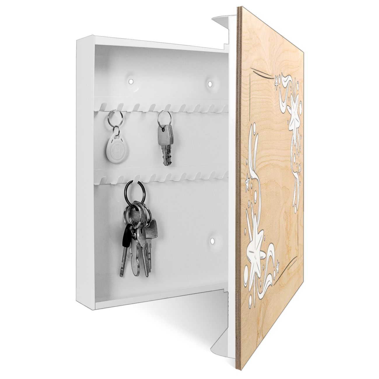 Schlüsselkasten mit Holzfront - Design Schlüsselbox Motiv Maritimer Seesternrahmen