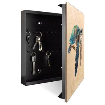 Schlüsselkasten mit Holzfront - Design Schlüsselbox Motiv Meeresschildkröte Abenteuer