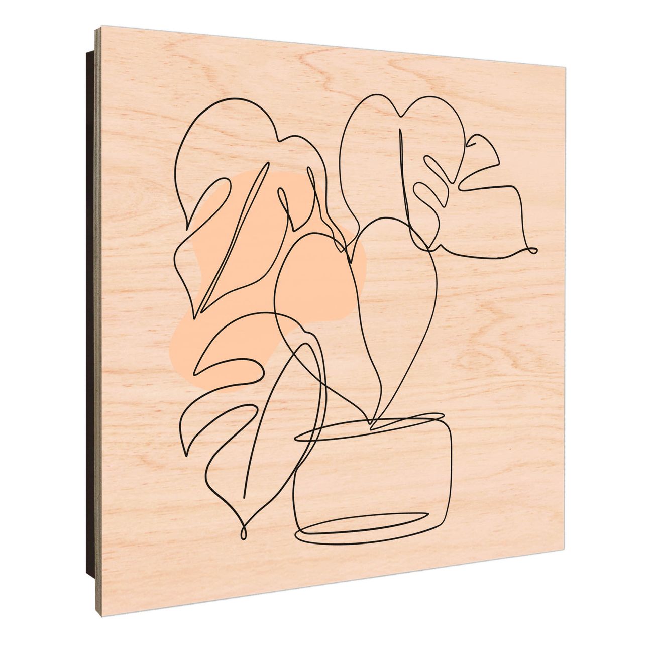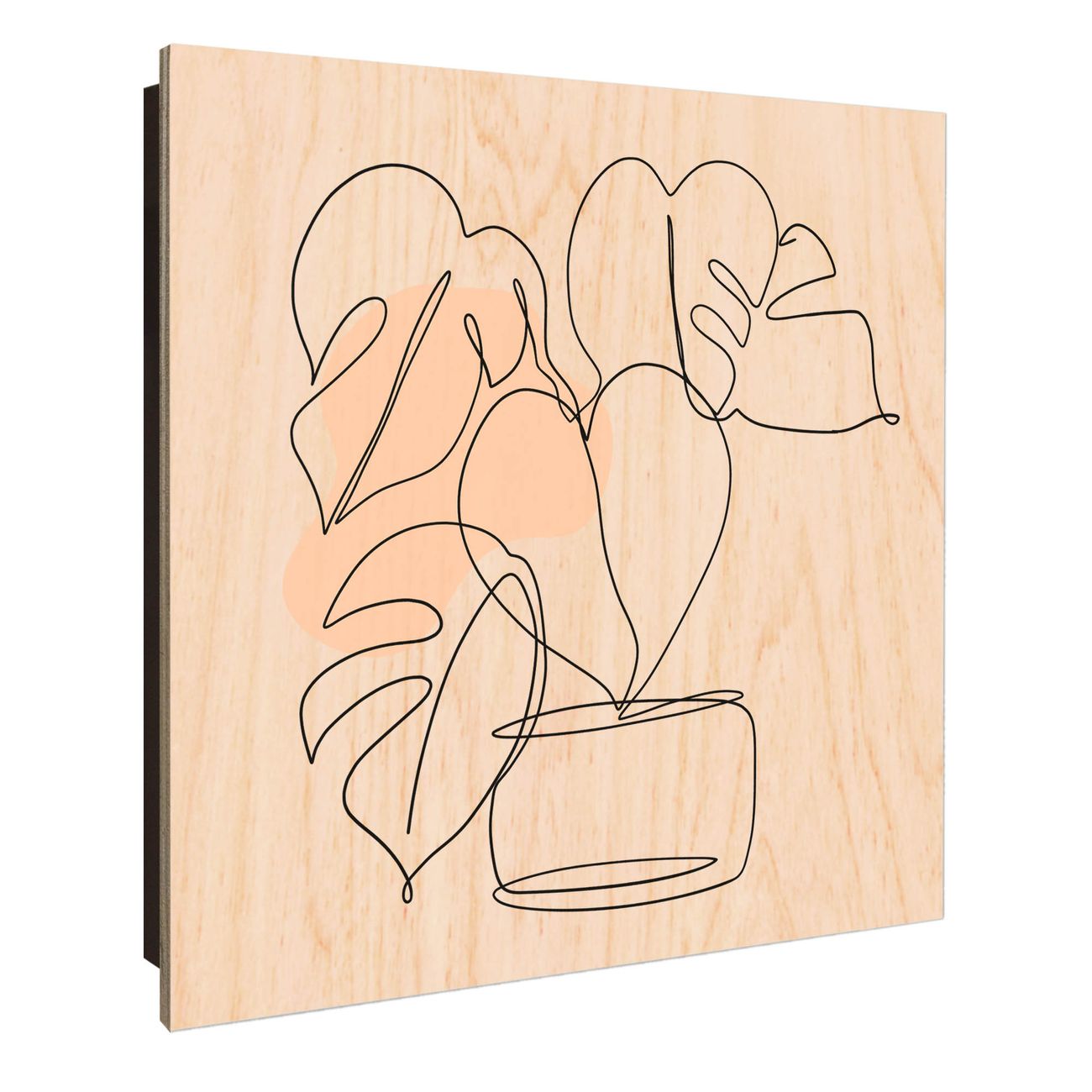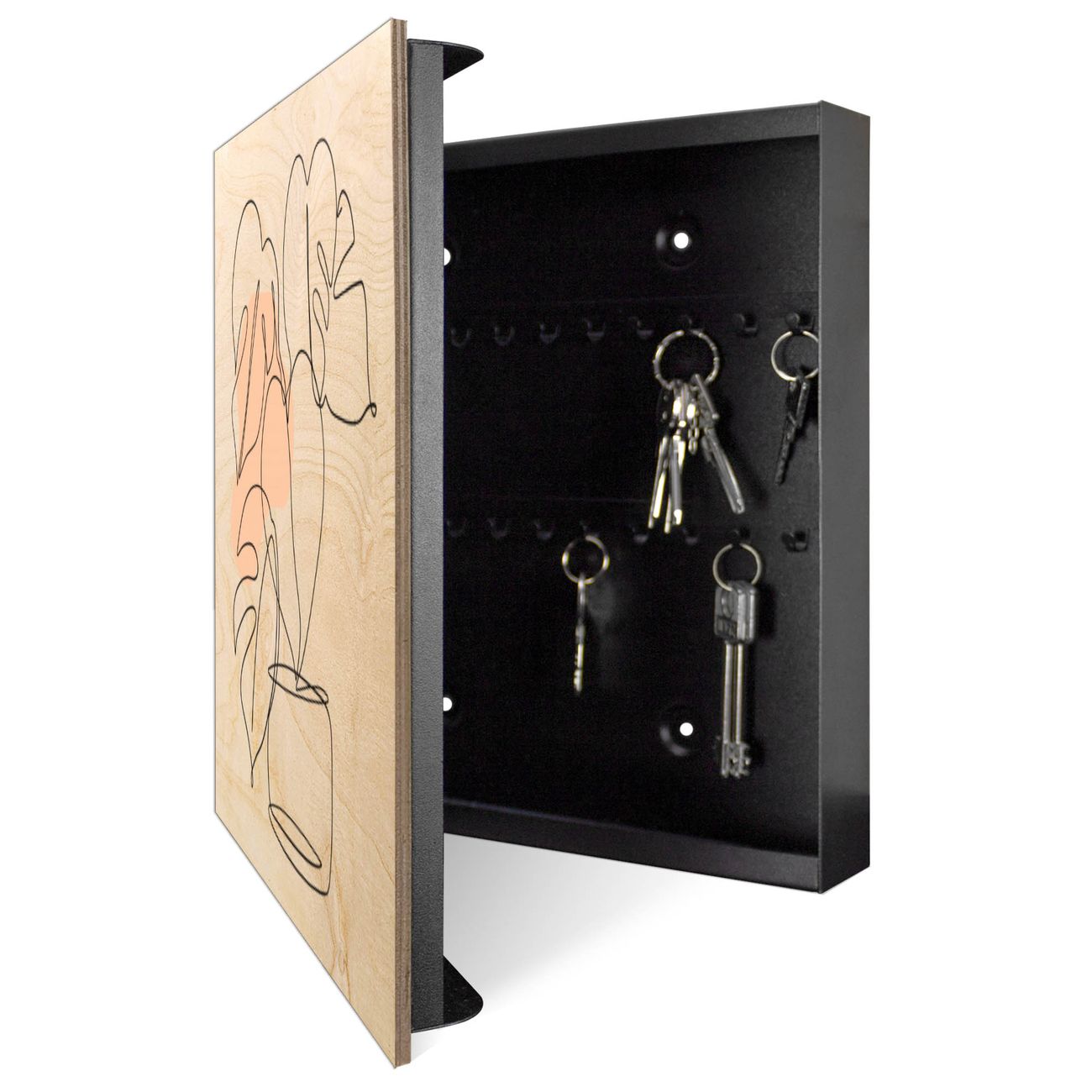 Schlüsselkasten mit Holzfront - Design Schlüsselbox Motiv Minimalistische Pflanzenlinie