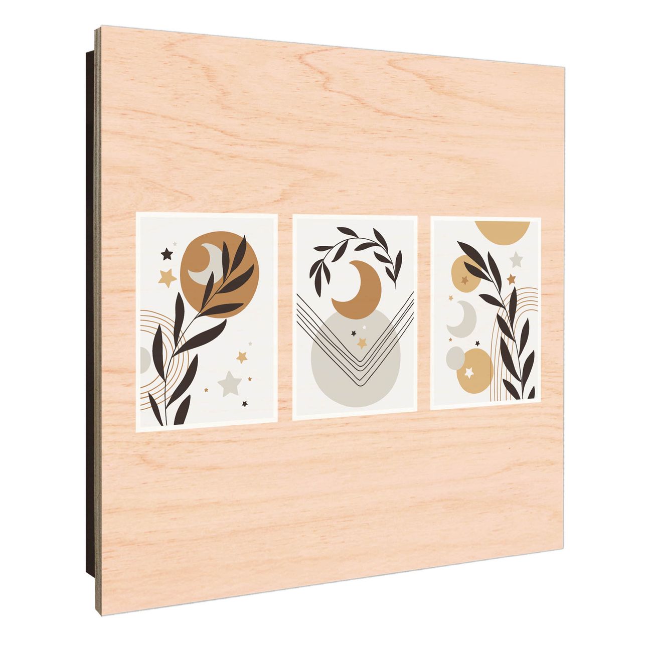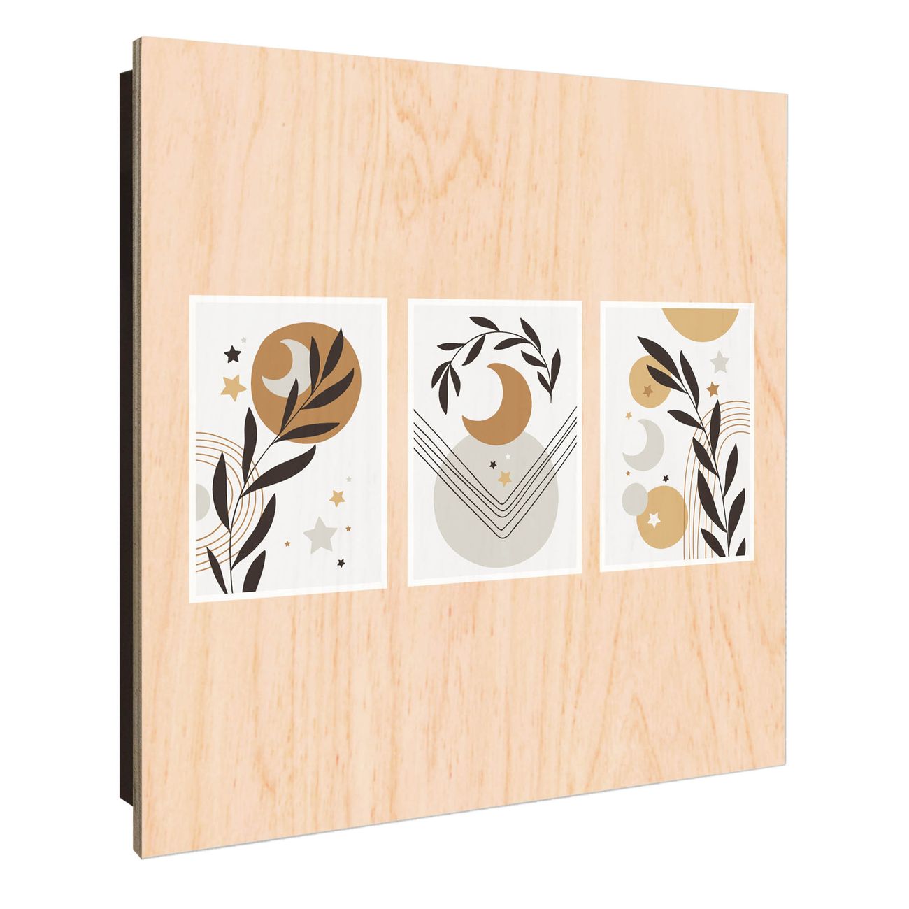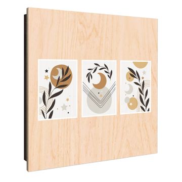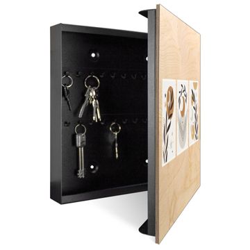 Schlüsselkasten mit Holzfront - Design Schlüsselbox Motiv Mond und Blätter Komposition