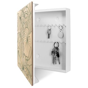 Schlüsselkasten mit Holzfront - Design Schlüsselbox Motiv Monstera 2