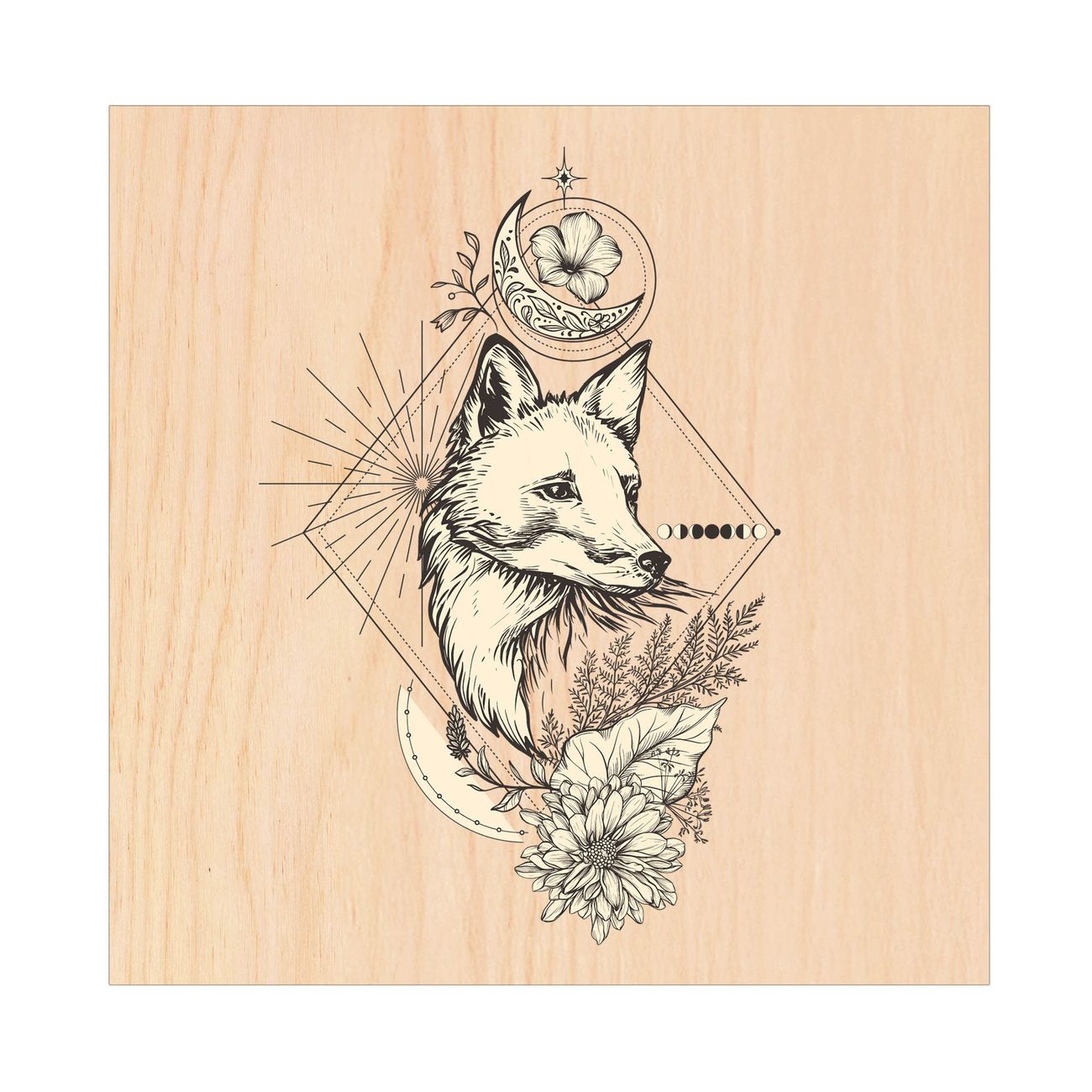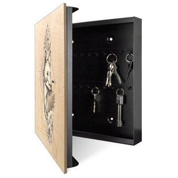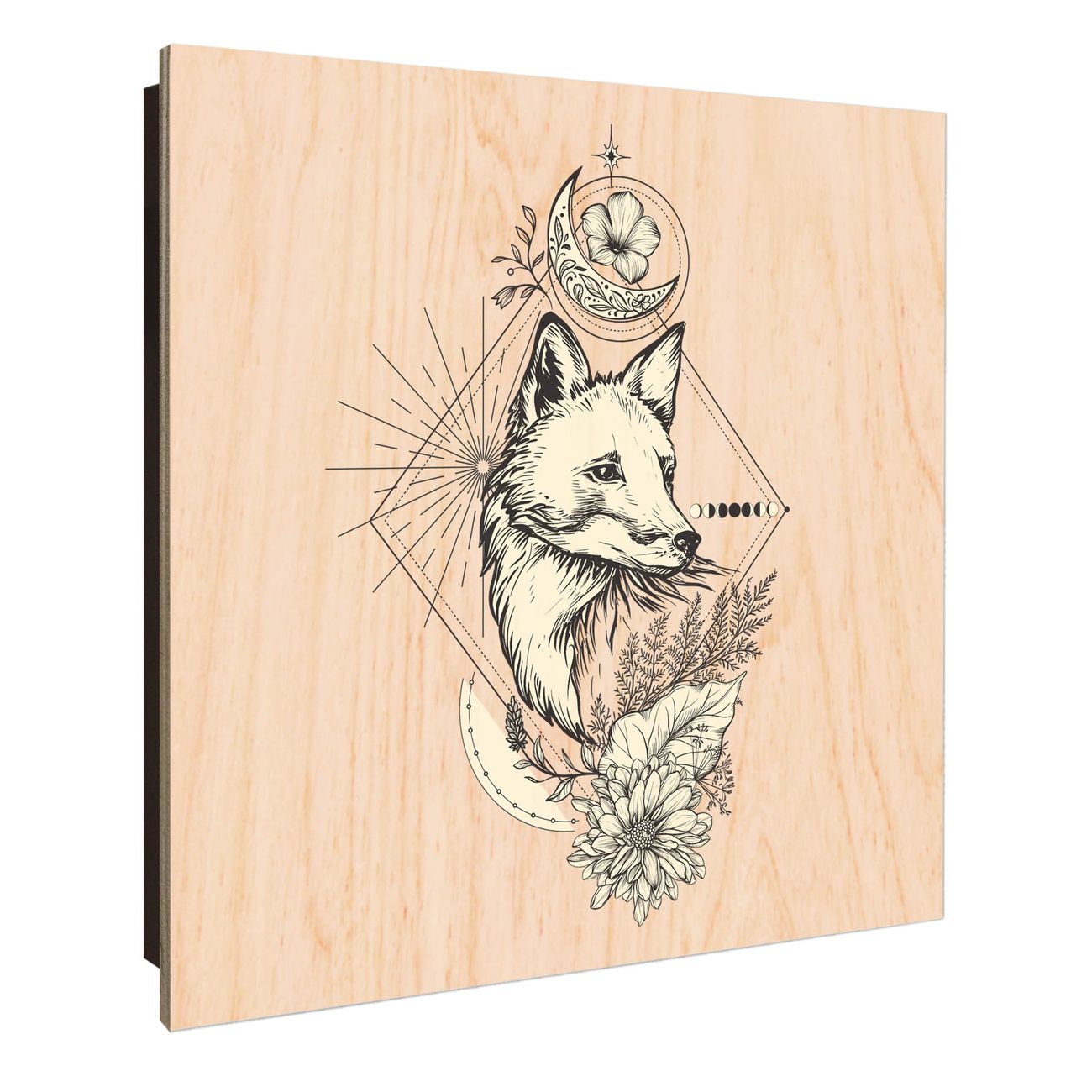 Schlüsselkasten mit Holzfront - Design Schlüsselbox Motiv Mystischer Fuchs
