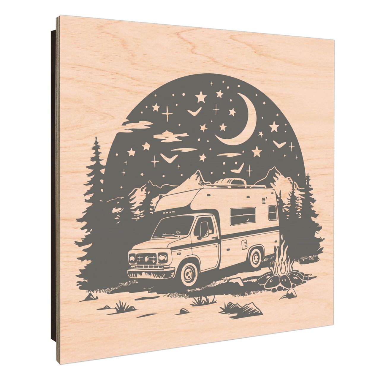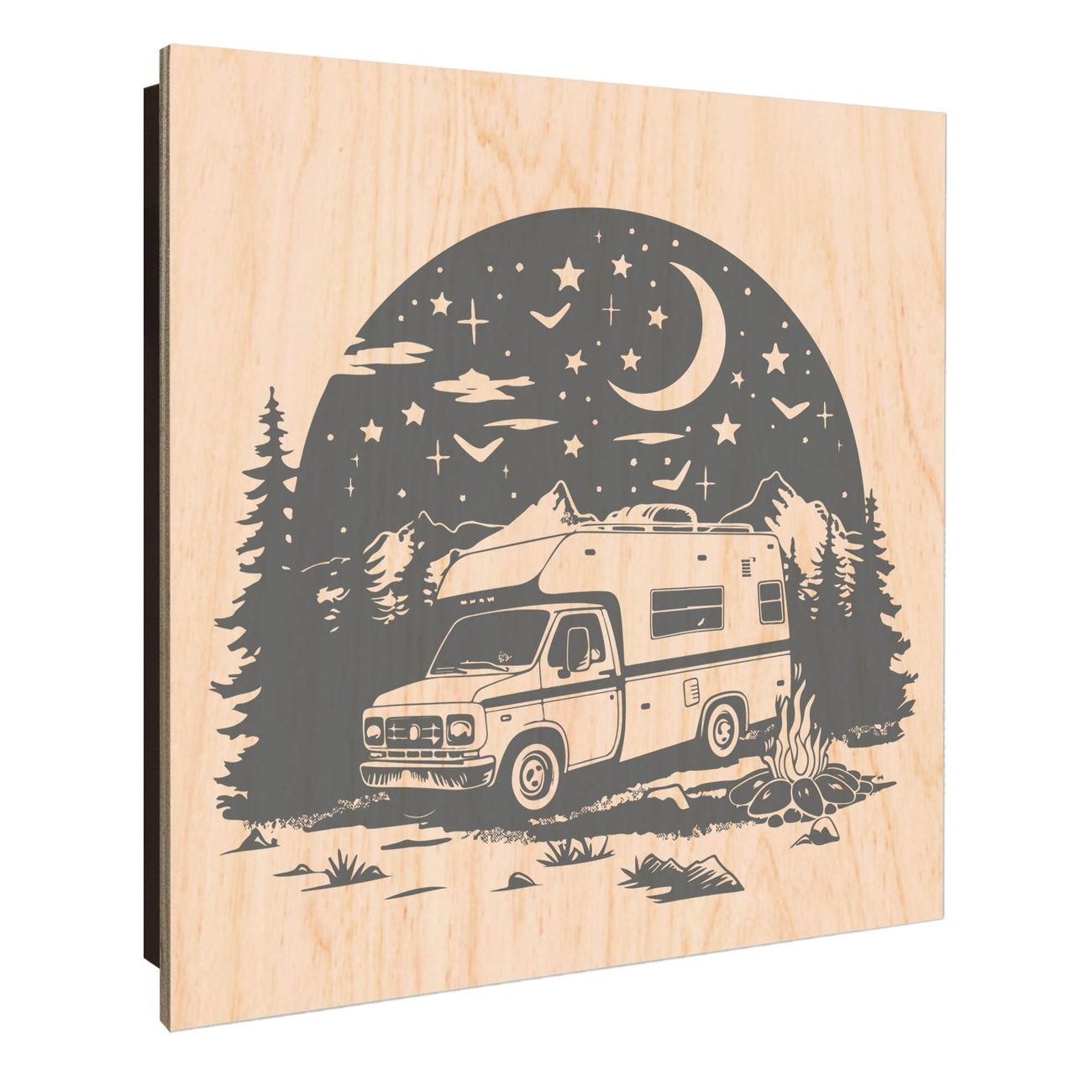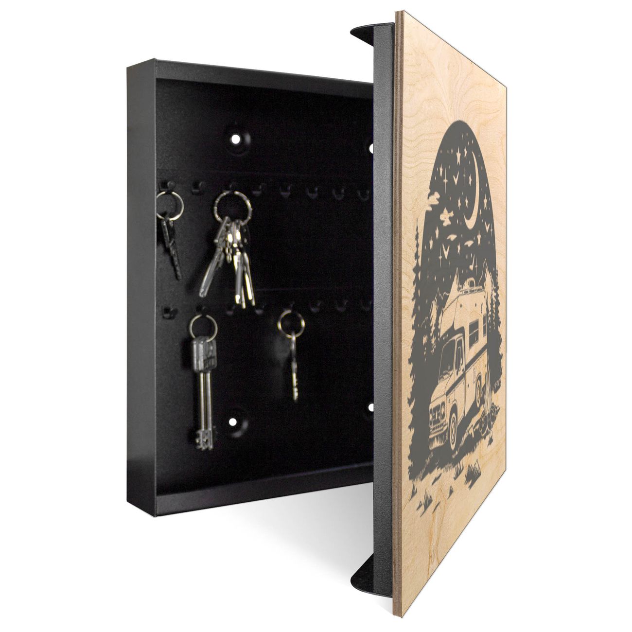 Schlüsselkasten mit Holzfront - Design Schlüsselbox Motiv Nächtliches Campingabenteuer