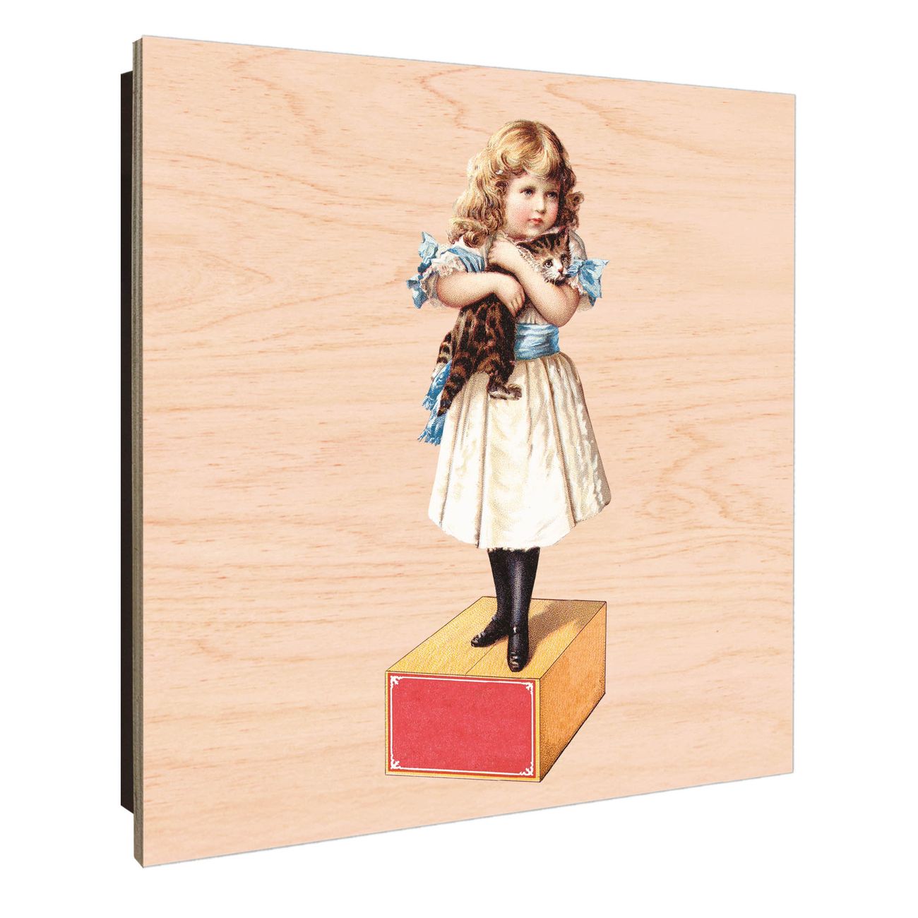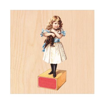 Schlüsselkasten mit Holzfront - Design Schlüsselbox Motiv Nostalgisches Mädchen mit Katze