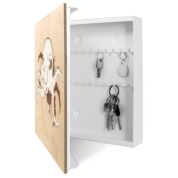 Schlüsselkasten mit Holzfront - Design Schlüsselbox Motiv Oktopus Comic 2