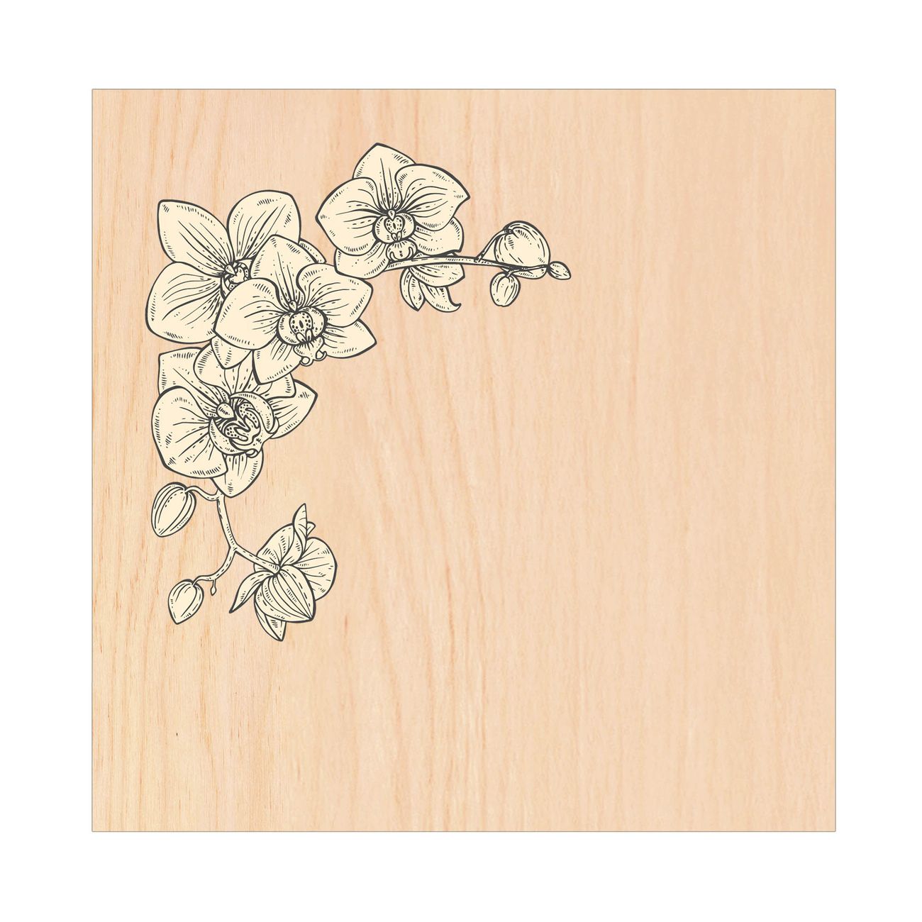 Schlüsselkasten mit Holzfront - Design Schlüsselbox Motiv Orchideenzeichnung