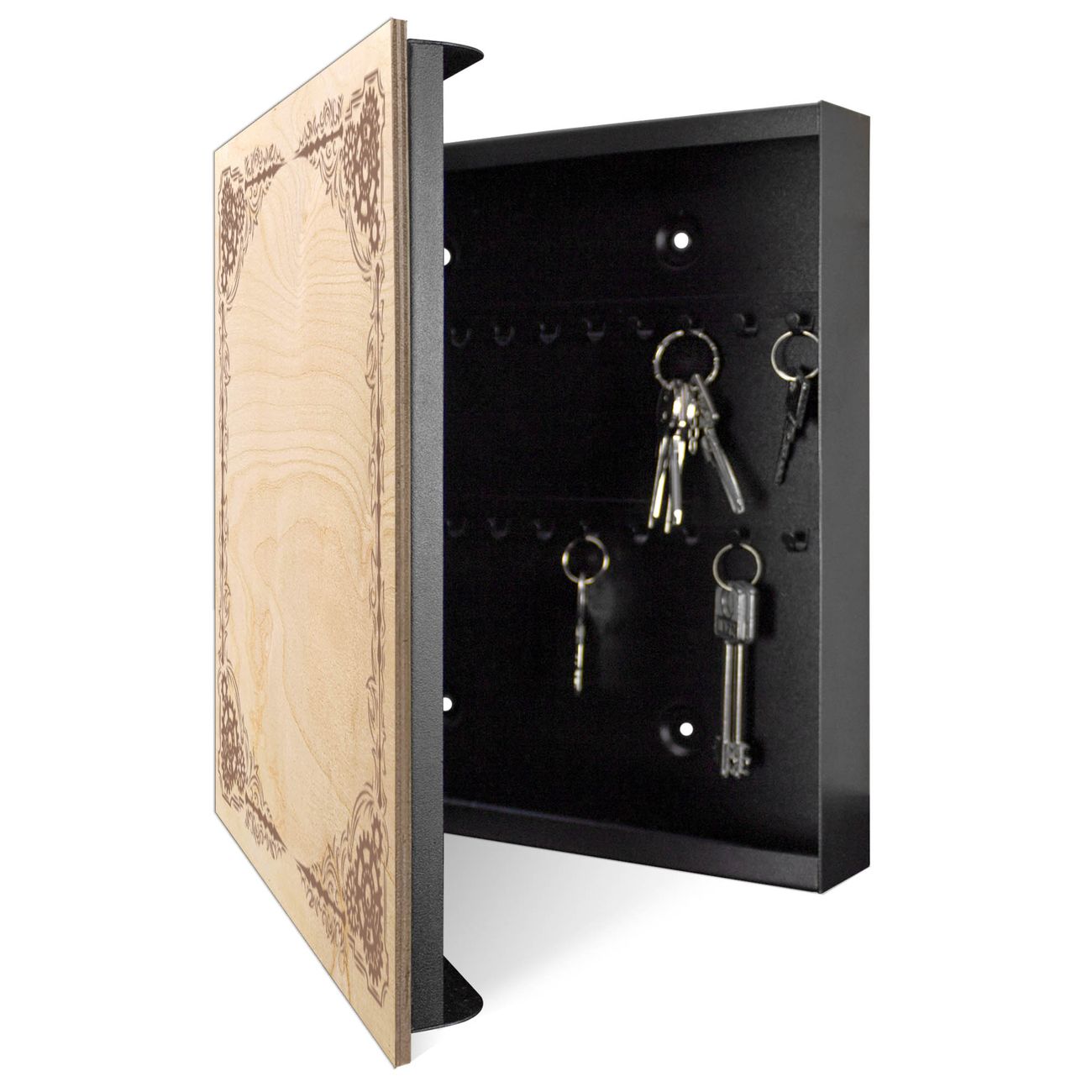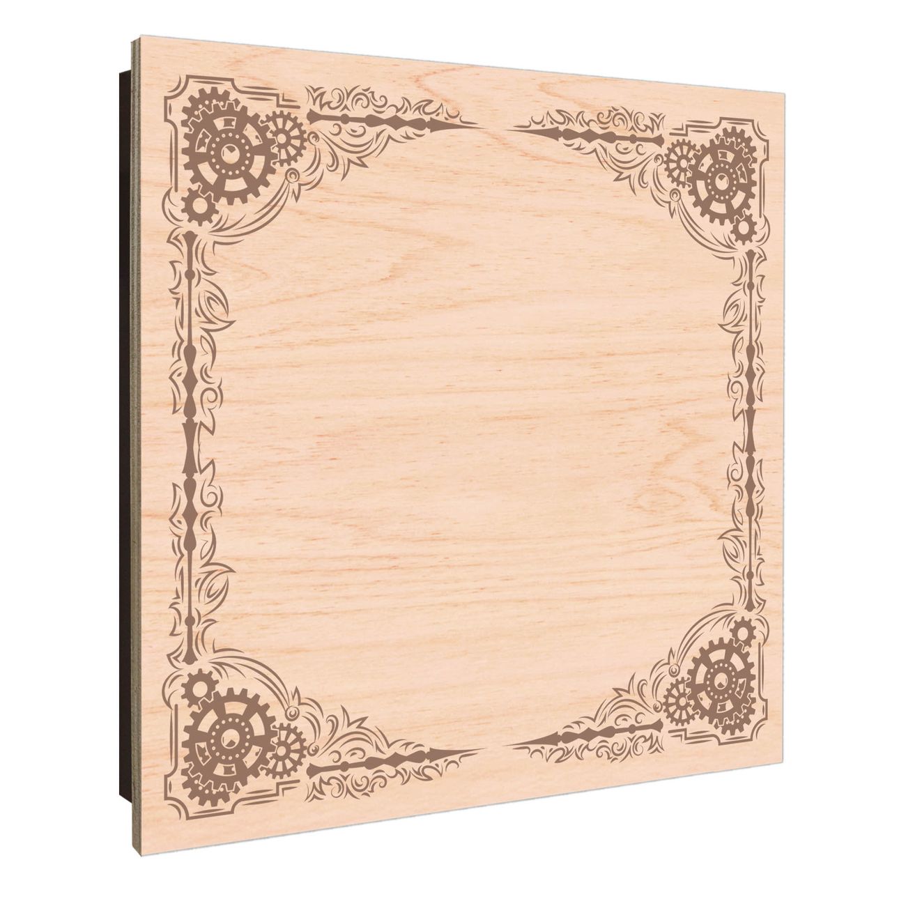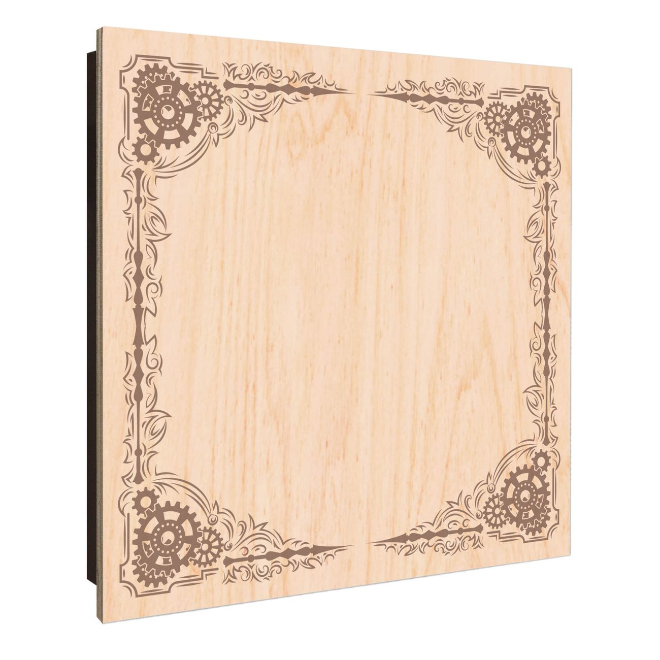 Schlüsselkasten mit Holzfront - Design Schlüsselbox Motiv Ornamentaler Zahnräderrahmen