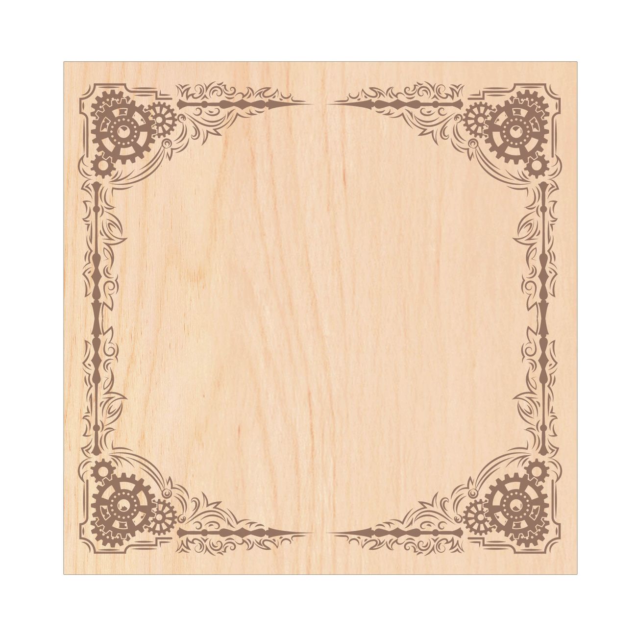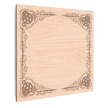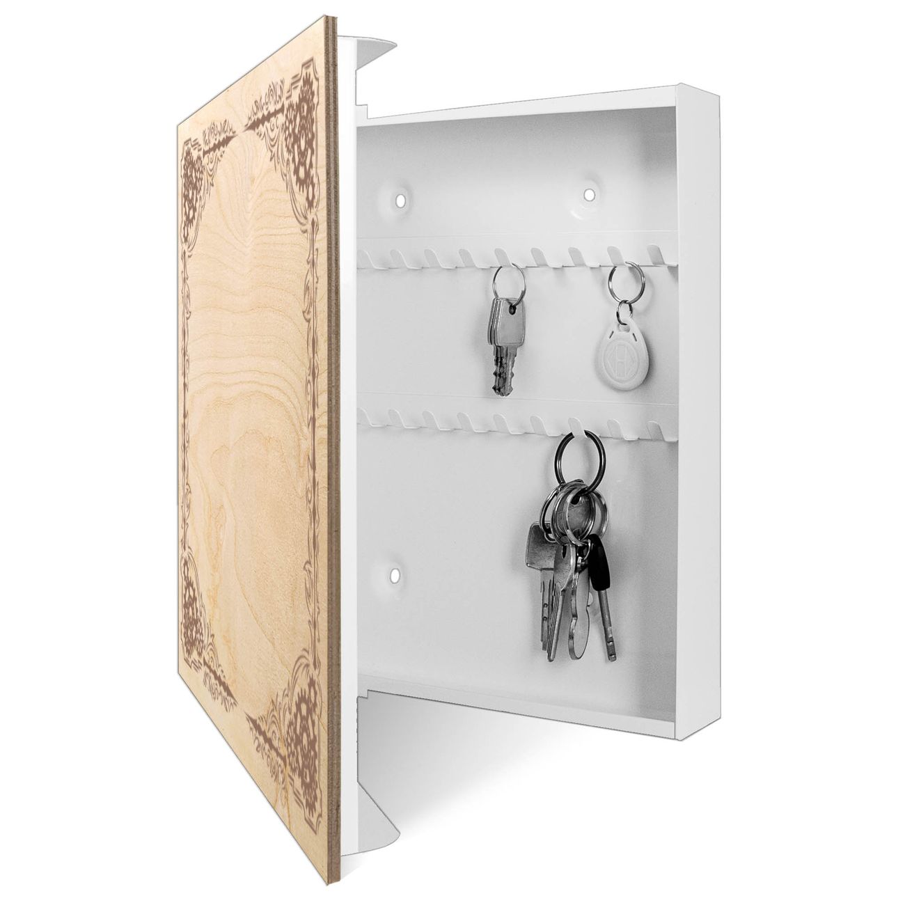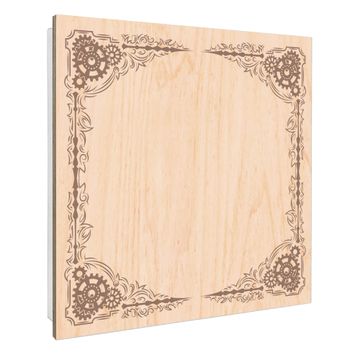 Schlüsselkasten mit Holzfront - Design Schlüsselbox Motiv Ornamentaler Zahnräderrahmen