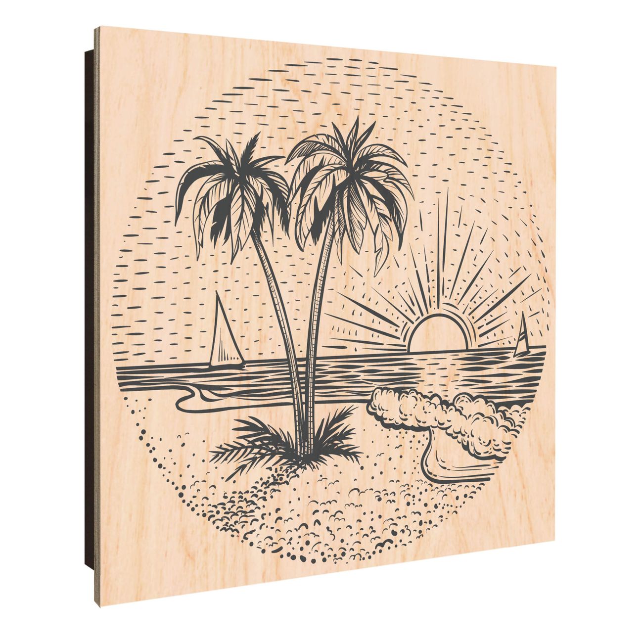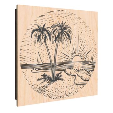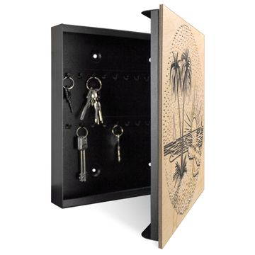 Schlüsselkasten mit Holzfront - Design Schlüsselbox Motiv Palmenstrand 2