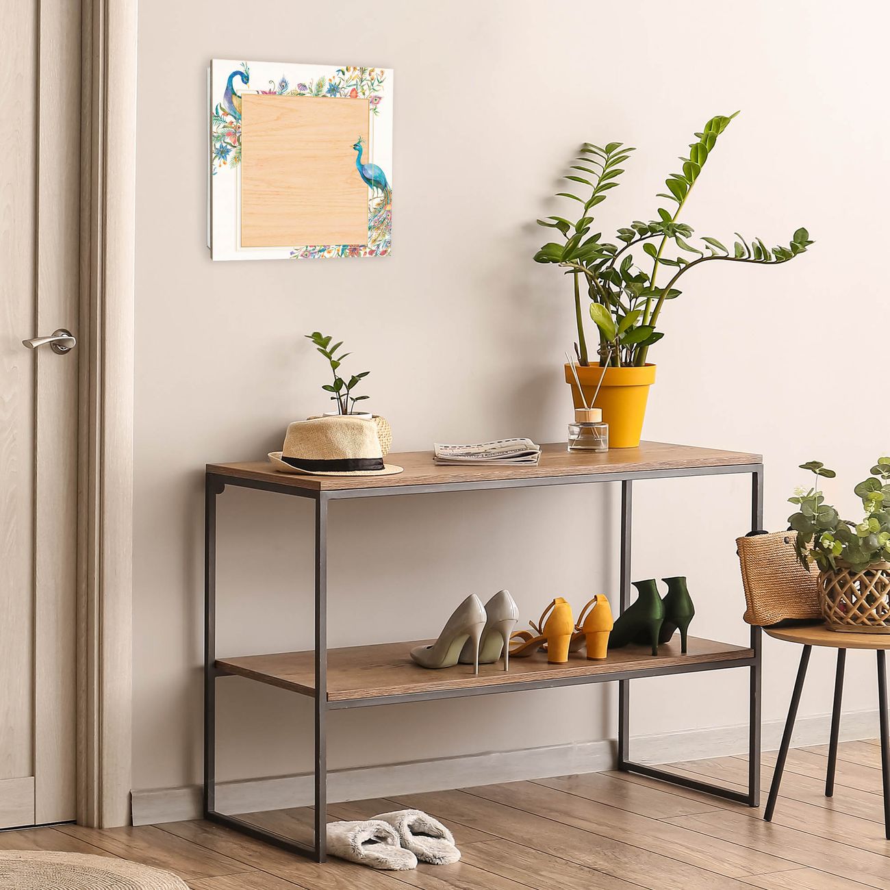 Bringe Ordnung und Eleganz in deinen Eingangsbereich mit dem banjado Schlüsselkasten Motiv Motiv Pfauenparadies. Die moderne Schlüsselbox kombiniert funktionales Design mit hochwertiger Verarbeitung und wird so zu einem echten Hingucker in Flur, Büro oder Ferienwohnung. ✅ Stilvolle Schlüsselaufbewahrung mit moderner Holzfront im Motiv Motiv Pfauenparadies Der Design-Schlüsselkasten Motiv Motiv Pfauenparadies bietet Platz für bis zu 50 Schlüssel, die auf 5 stabilen Reihen mit je 10 Haken übersichtlich verstaut werden. Mit seinen kompakten Maßen von 30 x 30 x 5 cm passt die Schlüsselbox perfekt auch in kleinere Räume. Der weiß lackierte Korpus mit dem Scharnier auf der linken Seite harmoniert mit der bedruckten Holzfront und fügt sich nahtlos in jedes Wohnambiente ein. Ob als Schlüsselorganizer für Zuhause oder als praktische Lösung für Büros, Praxen und Gewerbe - der banjado Schlüsselkasten sorgt für Ordnung und Übersicht. Durch die klare Strukturierung der Haken lassen sich auch viele Schlüssel problemlos verwalten. Die Schlüsselbox Motiv Motiv Pfauenparadies zur Wandmontage wird inklusive Befestigungsmaterial geliefert und ist schnell angebracht. So hast du deine Schlüssel jederzeit griffbereit und zugleich stilvoll verstaut. Mit diesem banjado Schlüsselkasten Motiv Motiv Pfauenparadies kombinierst du praktische Aufbewahrung mit stilvollem Wohndesign. Ob privat oder geschäftlich - die Schlüsselbox sorgt für mehr Ordnung, Übersicht und ein wohnliches Ambiente.Vorteile im Überblick