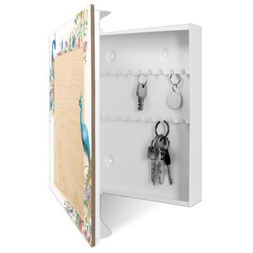 Schlüsselkasten mit Holzfront - Design Schlüsselbox Motiv Pfauenparadies