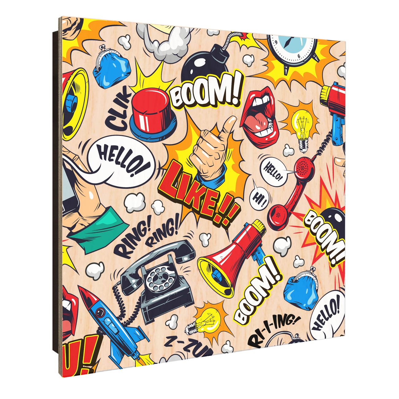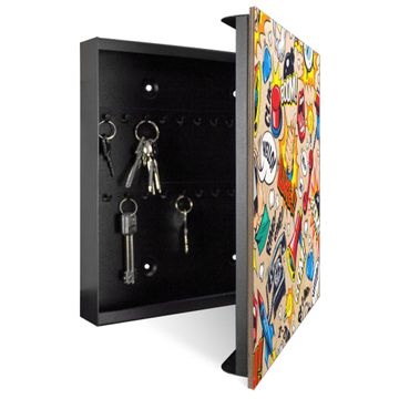 Schlüsselkasten mit Holzfront - Design Schlüsselbox Motiv Pop-Art Comic Muster