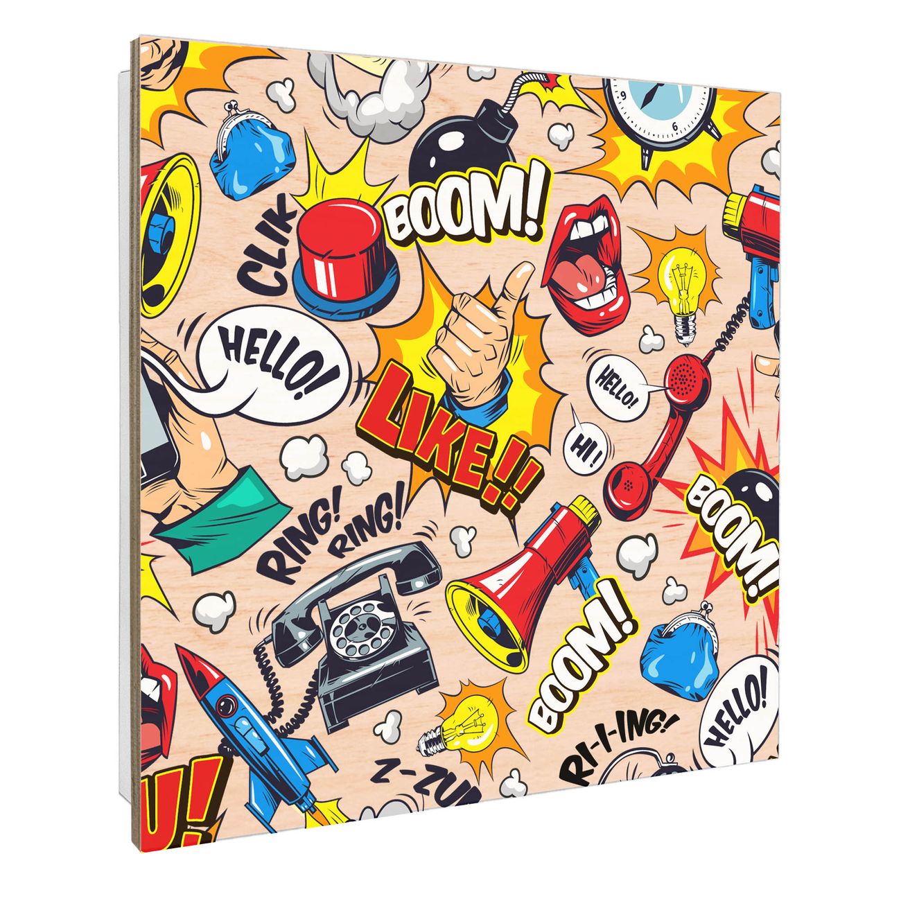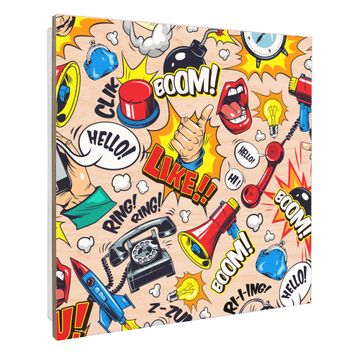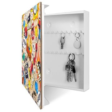 Schlüsselkasten mit Holzfront - Design Schlüsselbox Motiv Pop-Art Comic Muster
