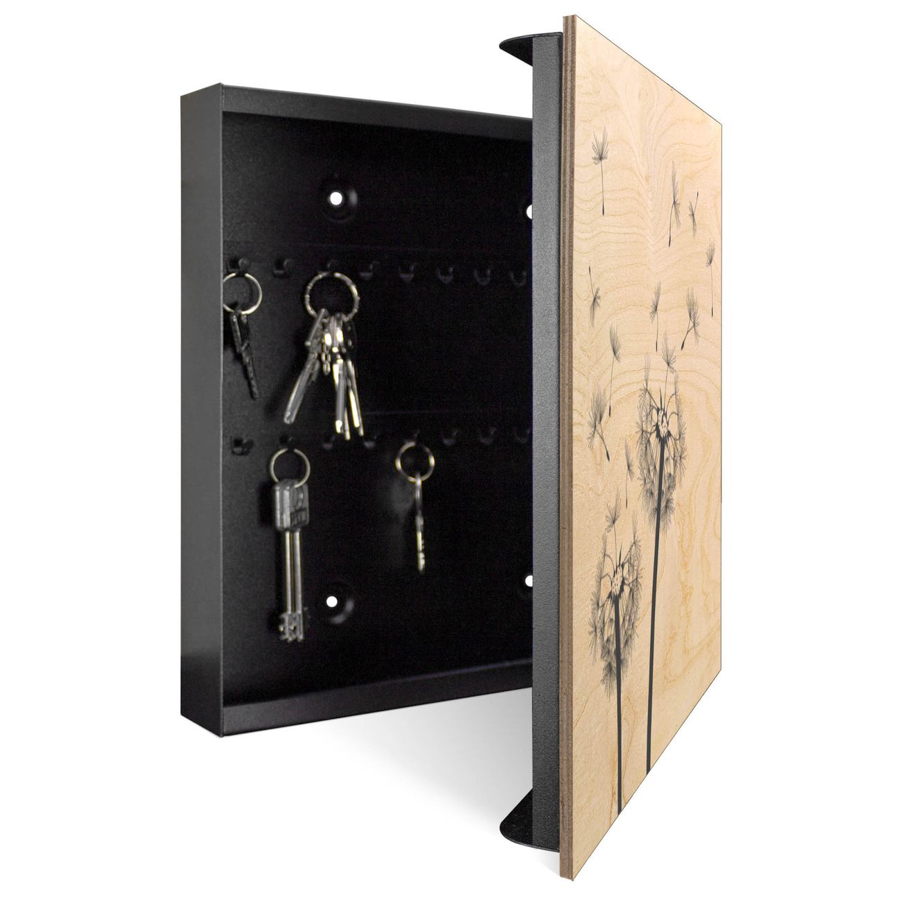 Schlüsselkasten mit Holzfront - Design Schlüsselbox Motiv Pusteblume 2