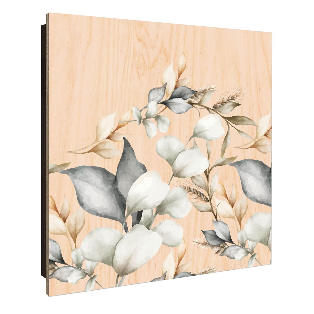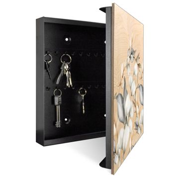 Schlüsselkasten mit Holzfront - Design Schlüsselbox Motiv Sanfte Blätter