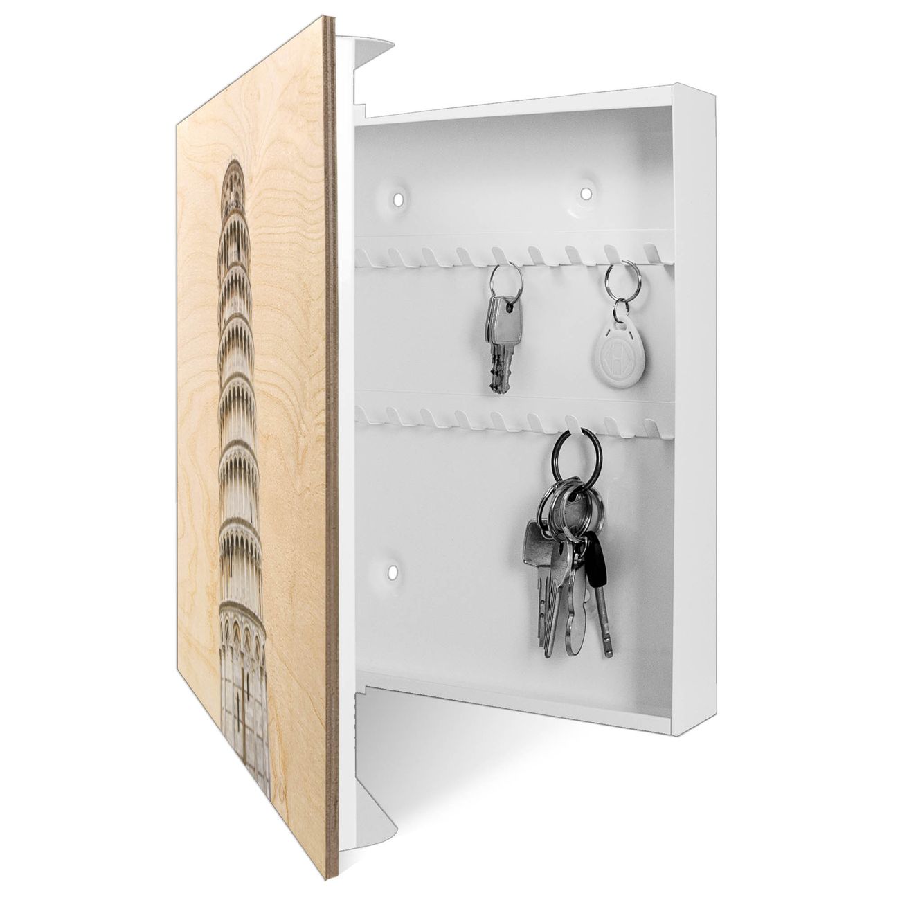 Schlüsselkasten mit Holzfront - Design Schlüsselbox Motiv Schiefer Turm von Pisa 2