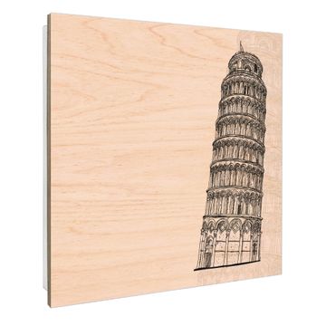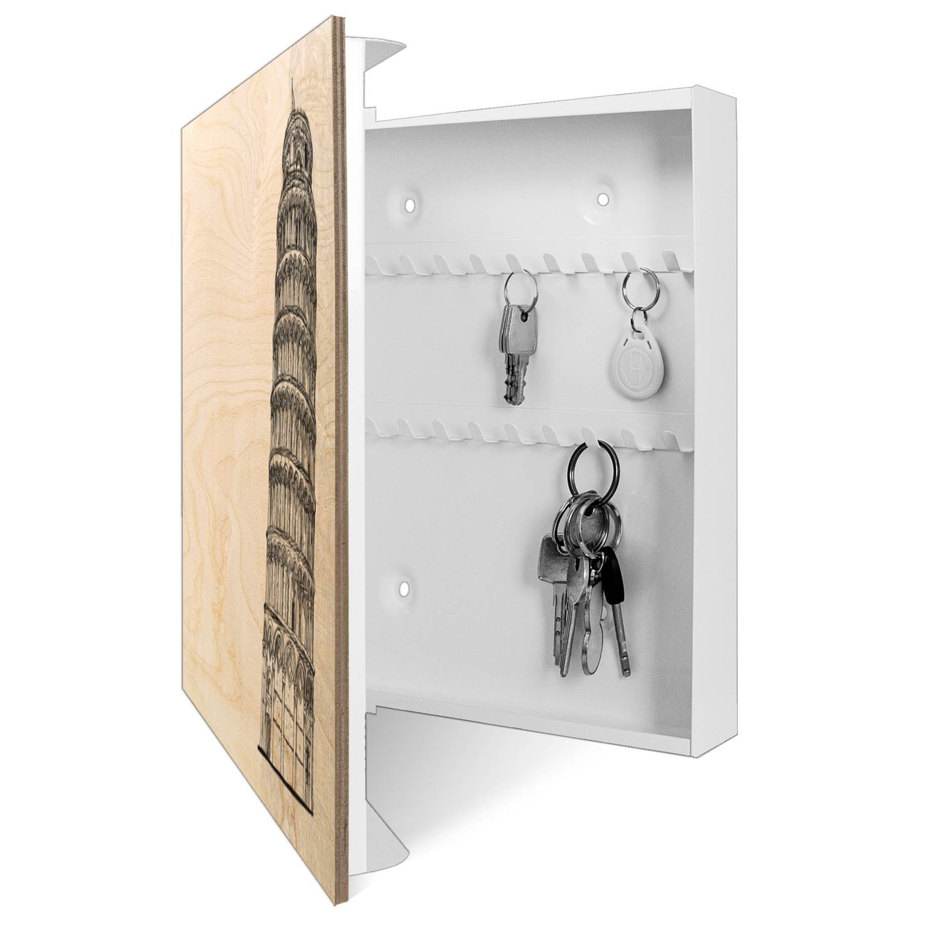 Schlüsselkasten mit Holzfront - Design Schlüsselbox Motiv Schiefer Turm von Pisa
