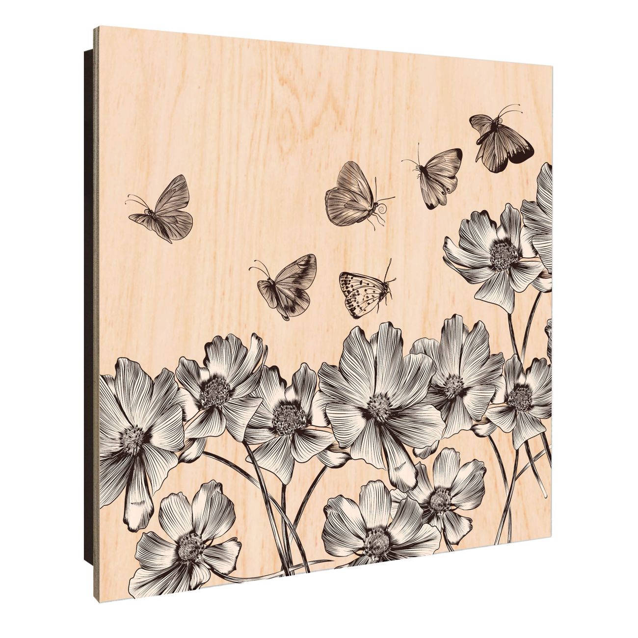 Schlüsselkasten mit Holzfront - Design Schlüsselbox Motiv Schmetterlingsgarten