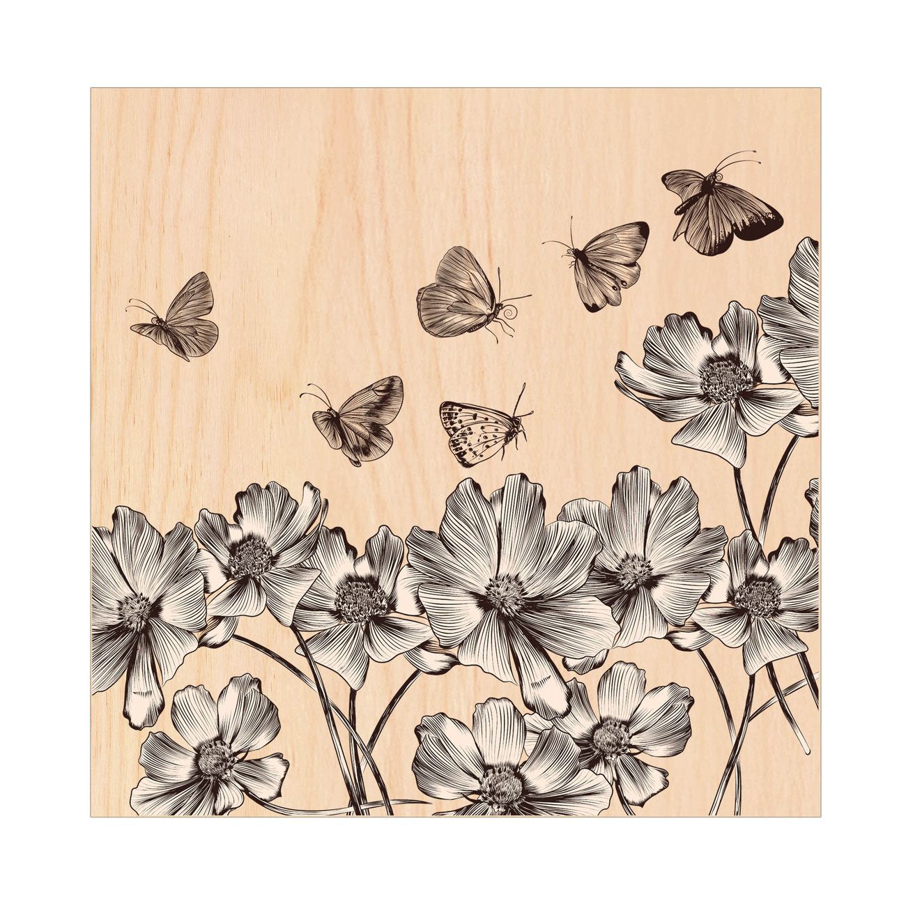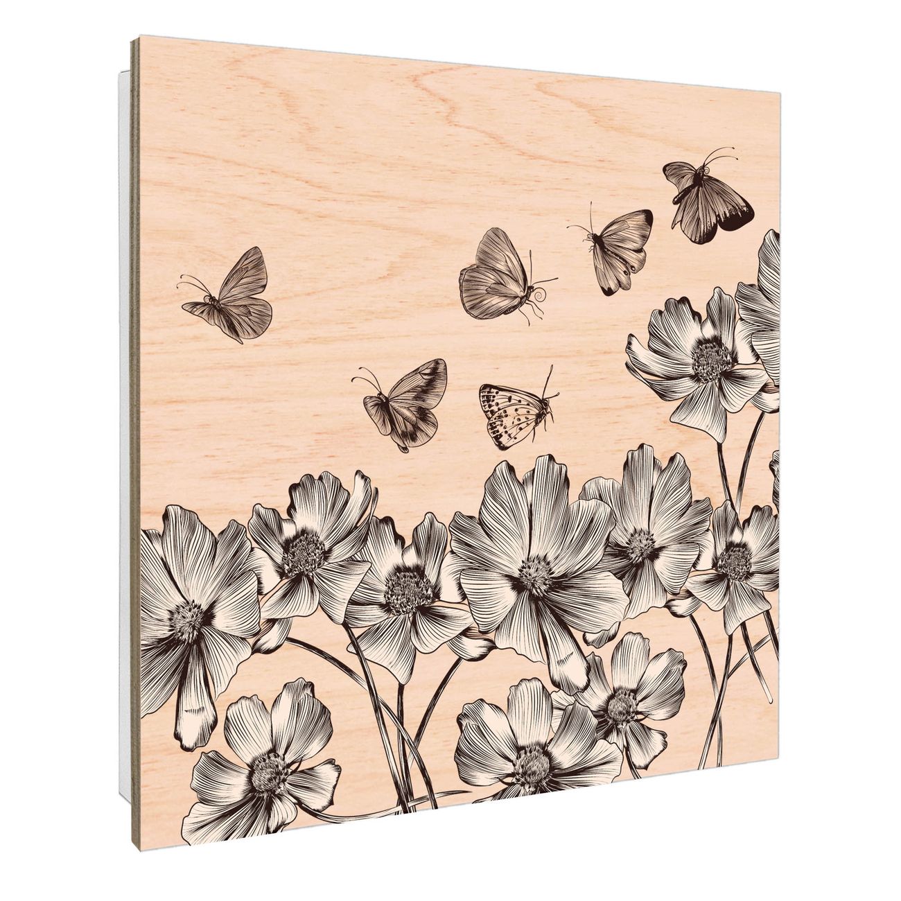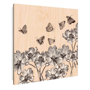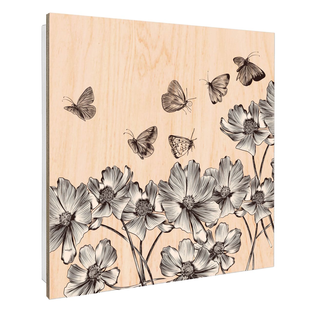 Schlüsselkasten mit Holzfront - Design Schlüsselbox Motiv Schmetterlingsgarten