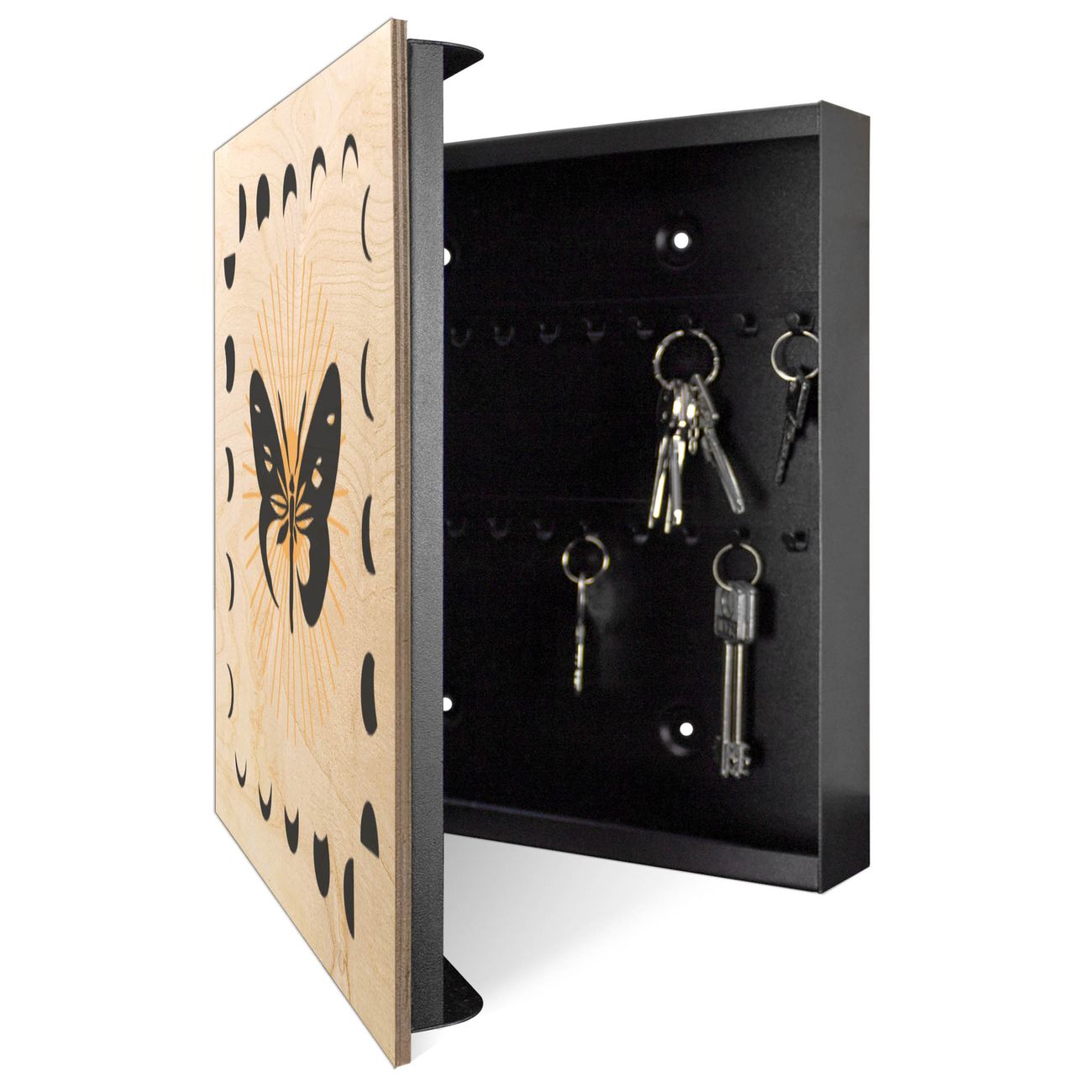 Schlüsselkasten mit Holzfront - Design Schlüsselbox Motiv Schmetterlingsmystik