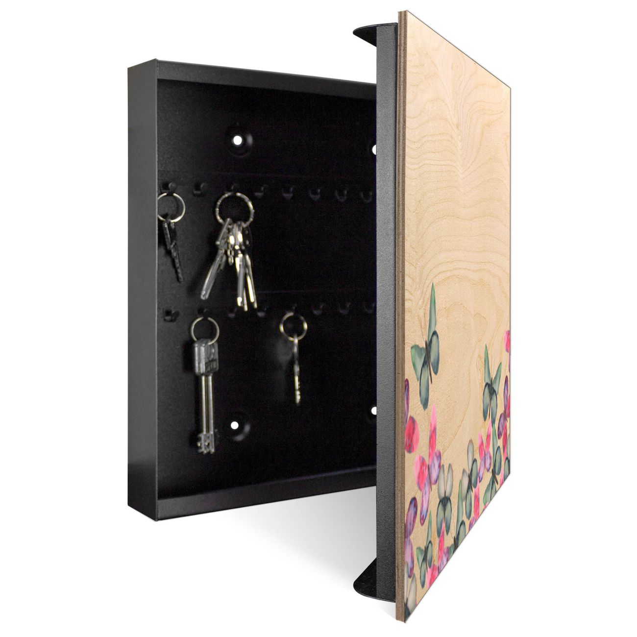 Schlüsselkasten mit Holzfront - Design Schlüsselbox Motiv Schmetterlingszauber