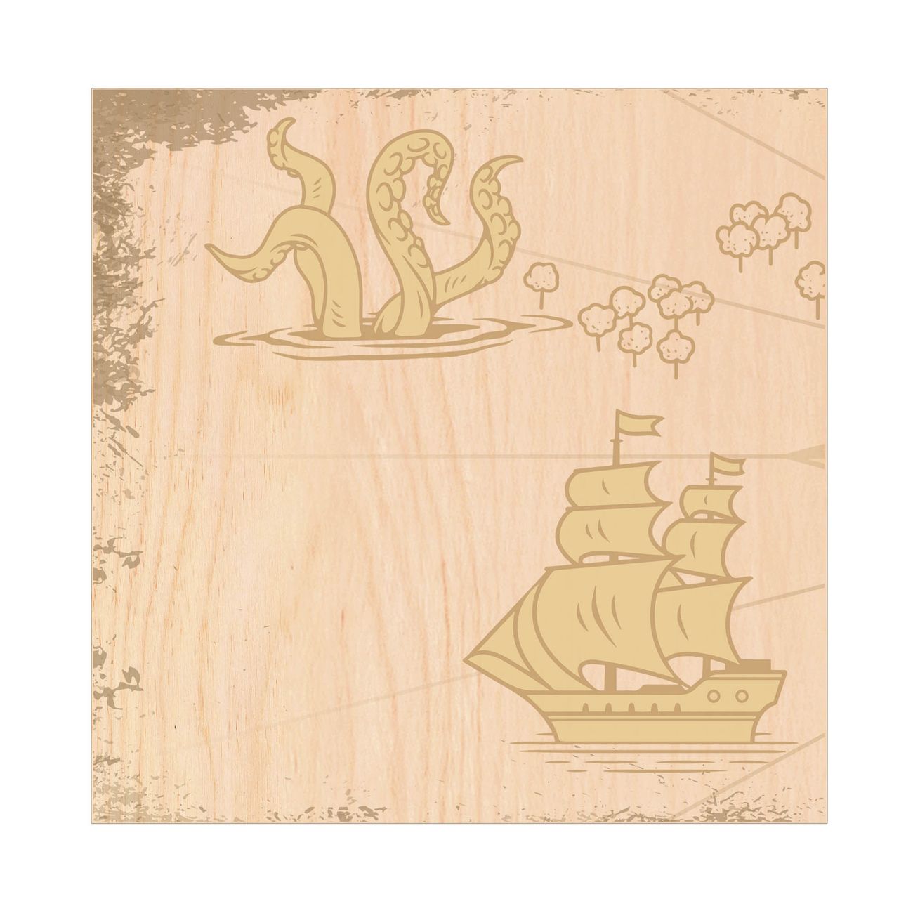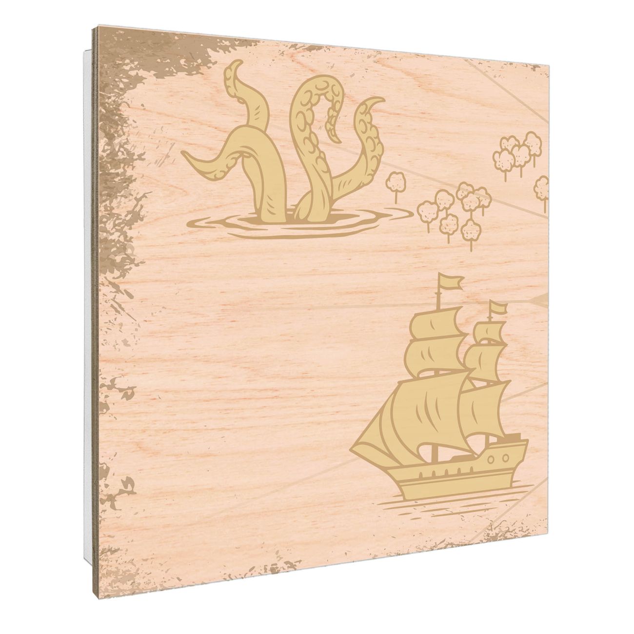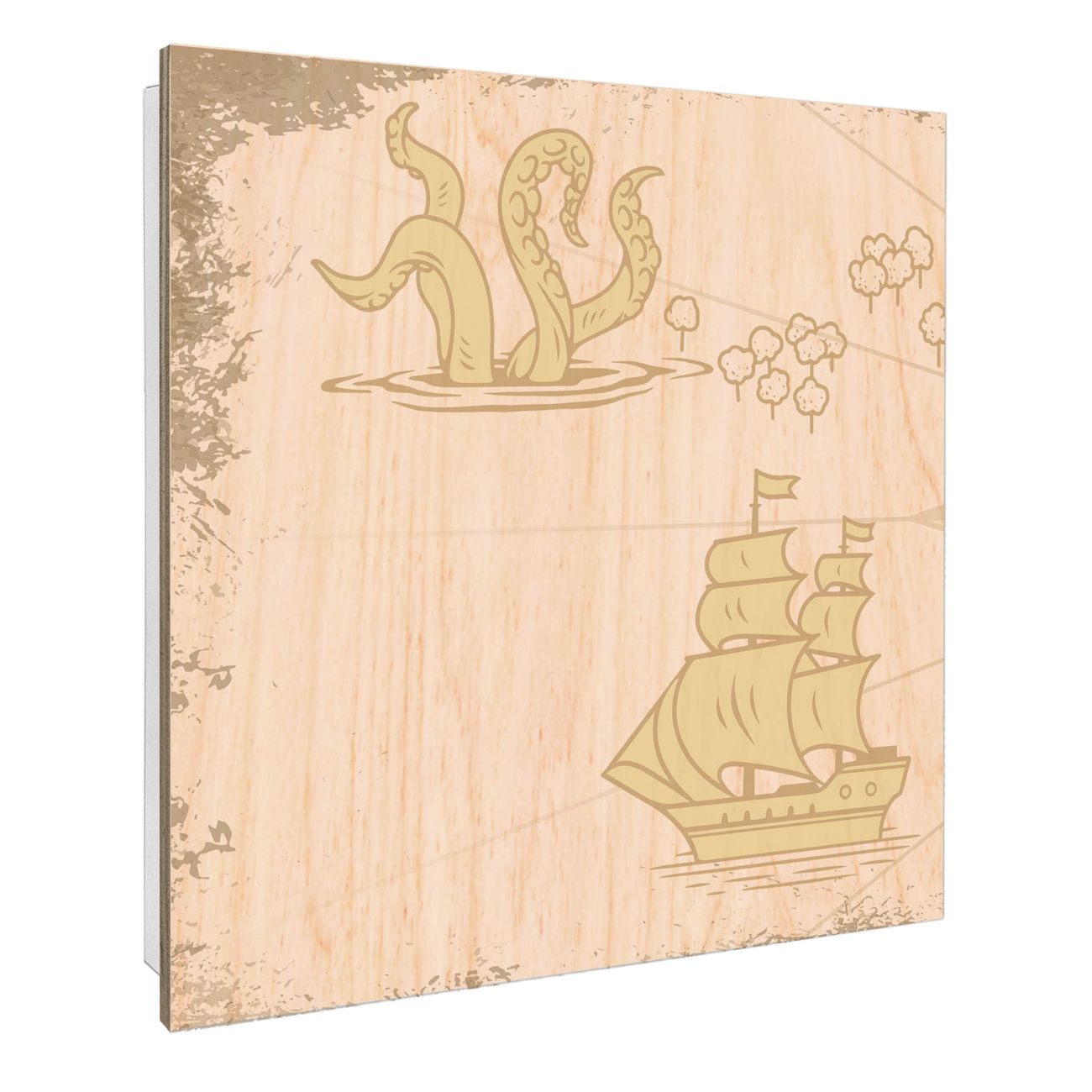 Schlüsselkasten mit Holzfront - Design Schlüsselbox Motiv Seemonster und Segelschiff