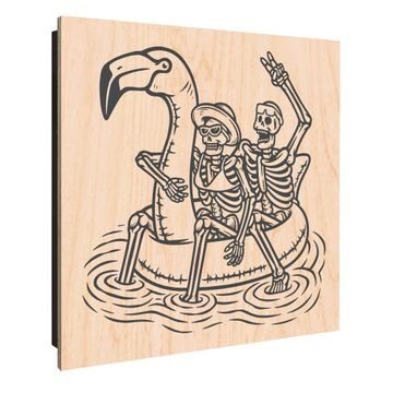 Schlüsselkasten mit Holzfront - Design Schlüsselbox Motiv Skelette mit Flamingoschwimmring 2