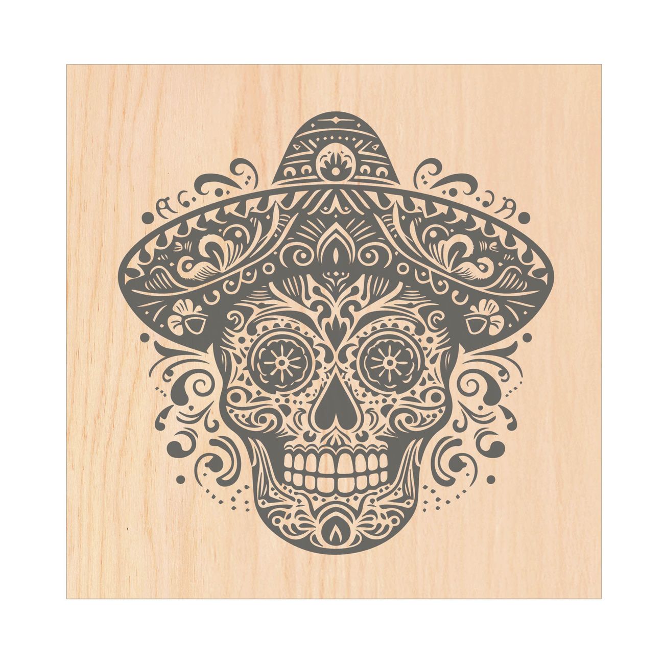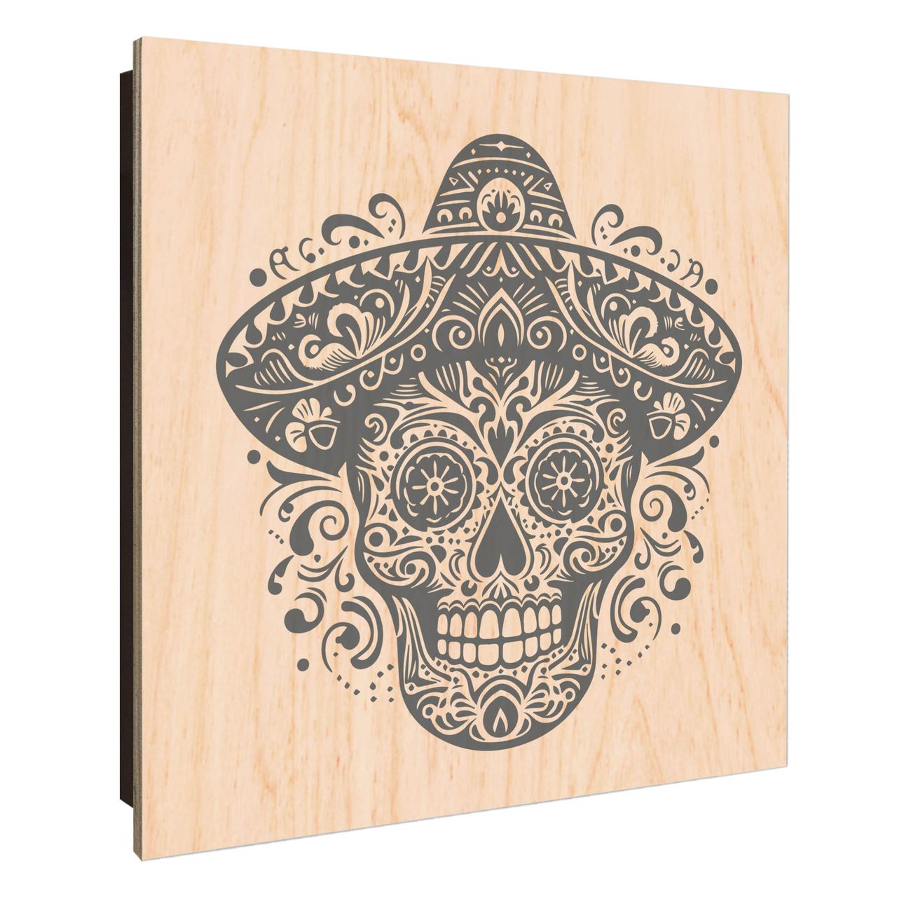 Schlüsselkasten mit Holzfront - Design Schlüsselbox Motiv Sombrero Totenkopf