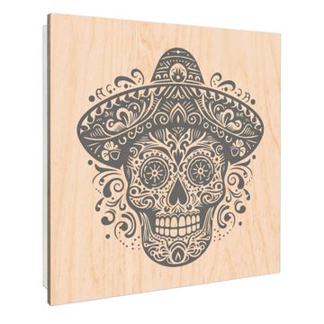 Schlüsselkasten mit Holzfront - Design Schlüsselbox Motiv Sombrero Totenkopf