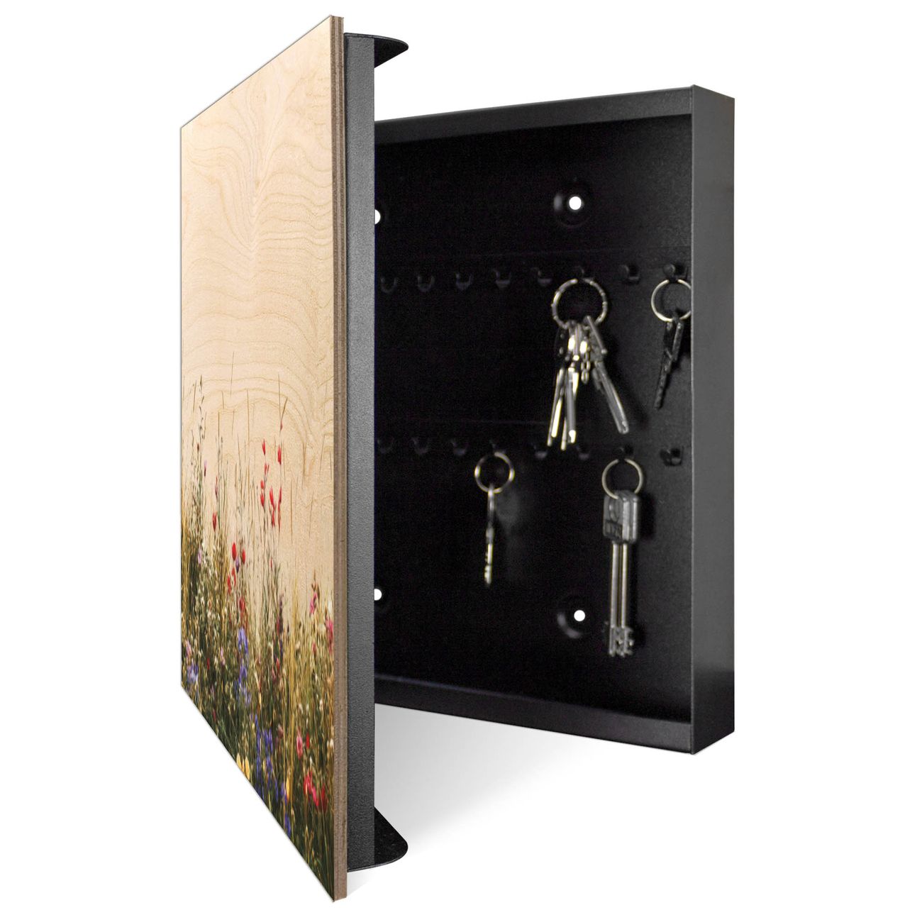 Schlüsselkasten mit Holzfront - Design Schlüsselbox Motiv Sommerliche Blumenwiese