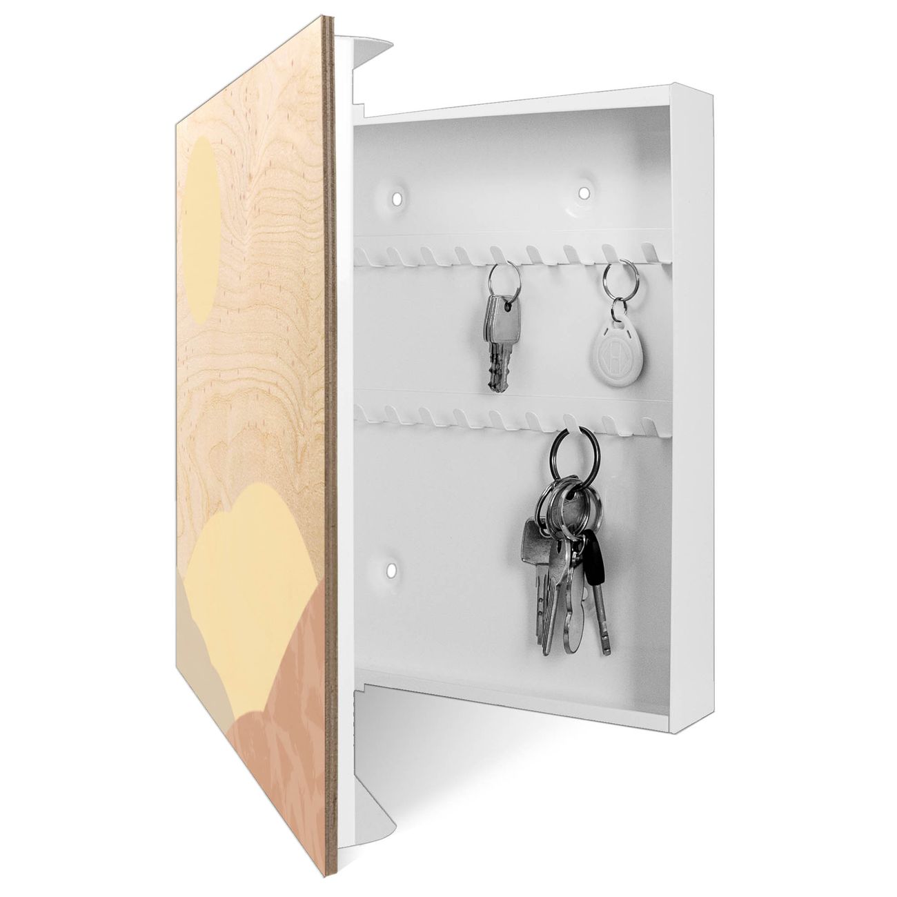 Schlüsselkasten mit Holzfront - Design Schlüsselbox Motiv Sommertag Abstrakt