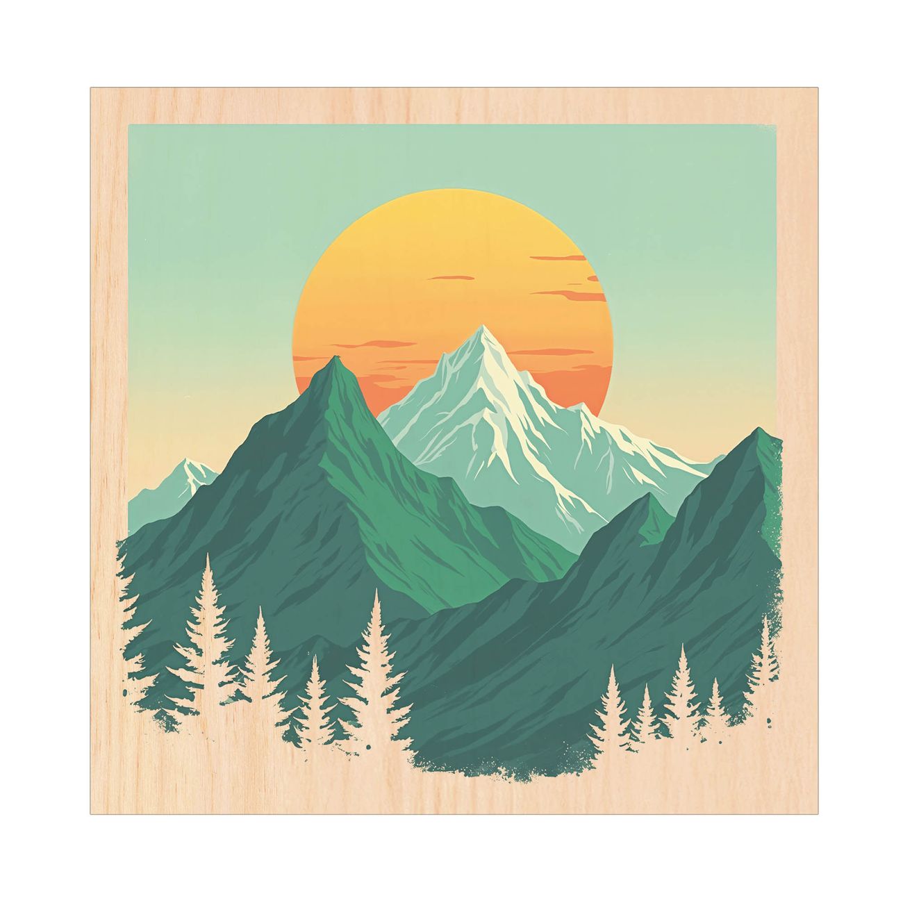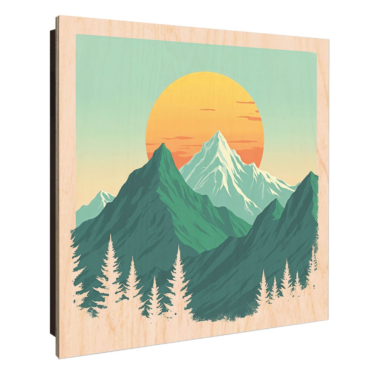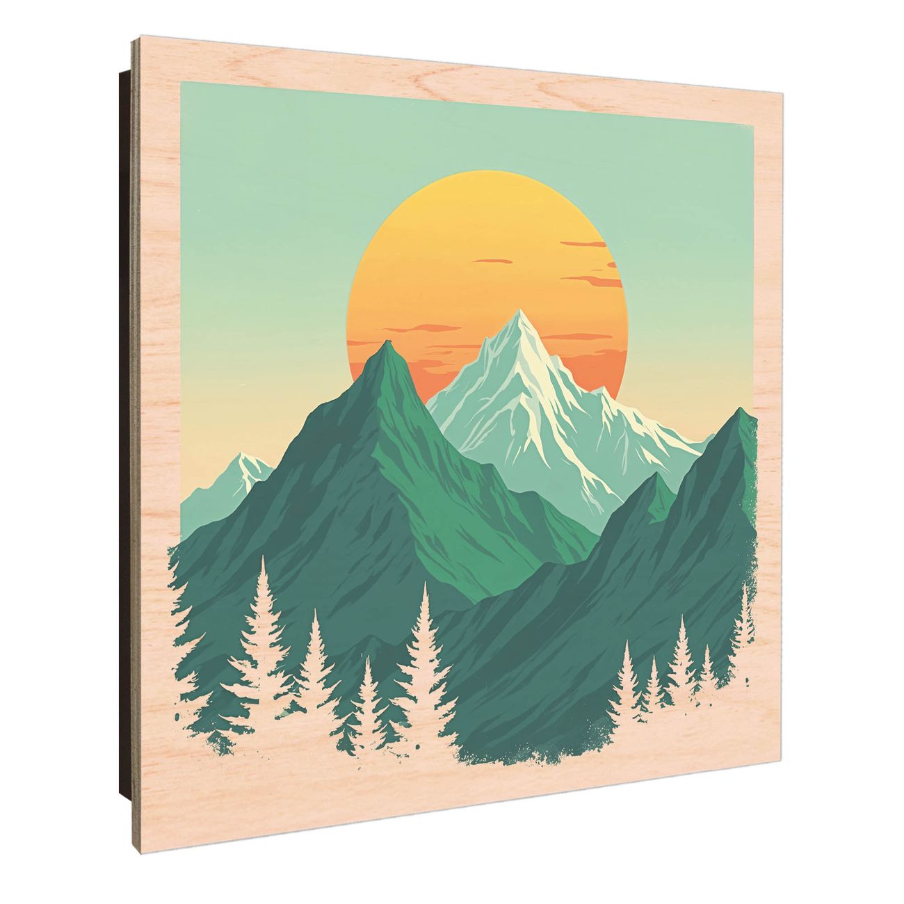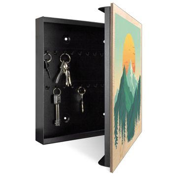 Schlüsselkasten mit Holzfront - Design Schlüsselbox Motiv Sonnenaufgang über den Bergen