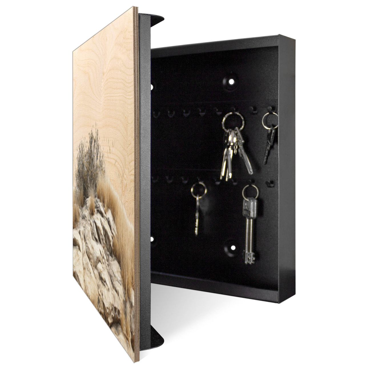 Schlüsselkasten mit Holzfront - Design Schlüsselbox Motiv Steinige Landschaft