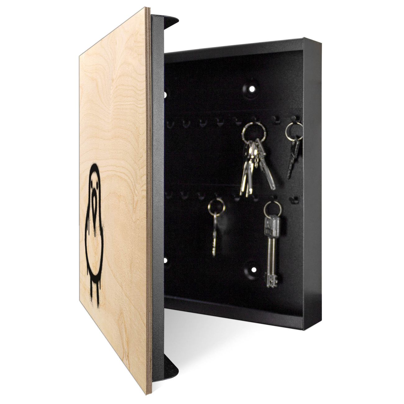 Bringe Ordnung und Eleganz in deinen Eingangsbereich mit dem banjado Schlüsselkasten Motiv Motiv Street Art Vogel. Die moderne Schlüsselbox kombiniert funktionales Design mit hochwertiger Verarbeitung und wird so zu einem echten Hingucker in Flur, Büro oder Ferienwohnung. ✅ Stilvolle Schlüsselaufbewahrung mit moderner Holzfront im Motiv Motiv Street Art Vogel Der Design-Schlüsselkasten Motiv Motiv Street Art Vogel bietet Platz für bis zu 50 Schlüssel, die auf 5 stabilen Reihen mit je 10 Haken übersichtlich verstaut werden. Mit seinen kompakten Maßen von 30 x 30 x 5 cm passt die Schlüsselbox perfekt auch in kleinere Räume. Der schwarz lackierte Korpus mit dem Scharnier auf der linken Seite harmoniert mit der bedruckten Holzfront und fügt sich nahtlos in jedes Wohnambiente ein. Ob als Schlüsselorganizer für Zuhause oder als praktische Lösung für Büros, Praxen und Gewerbe - der banjado Schlüsselkasten sorgt für Ordnung und Übersicht. Durch die klare Strukturierung der Haken lassen sich auch viele Schlüssel problemlos verwalten. Die Schlüsselbox Motiv Motiv Street Art Vogel zur Wandmontage wird inklusive Befestigungsmaterial geliefert und ist schnell angebracht. So hast du deine Schlüssel jederzeit griffbereit und zugleich stilvoll verstaut. Mit diesem banjado Schlüsselkasten Motiv Motiv Street Art Vogel kombinierst du praktische Aufbewahrung mit stilvollem Wohndesign. Ob privat oder geschäftlich - die Schlüsselbox sorgt für mehr Ordnung, Übersicht und ein wohnliches Ambiente.Vorteile im Überblick