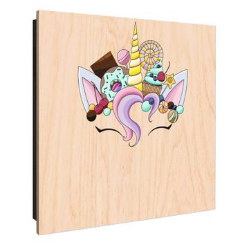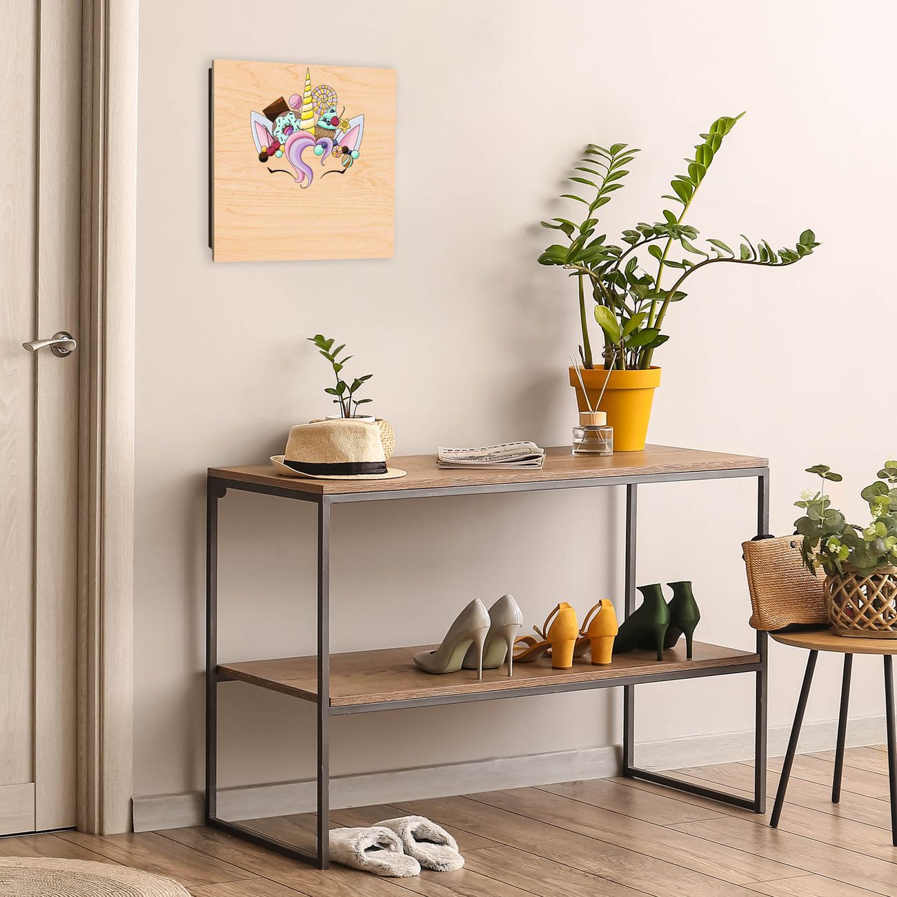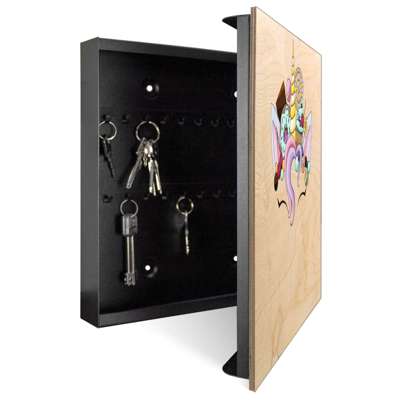 Schlüsselkasten mit Holzfront - Design Schlüsselbox Motiv Einhorn Maske