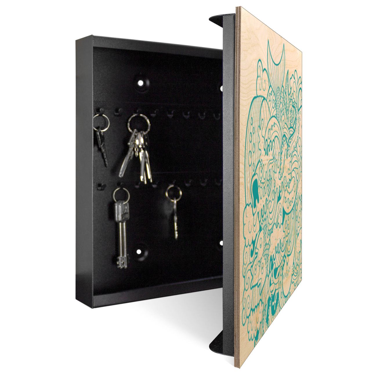 Schlüsselkasten mit Holzfront - Design Schlüsselbox Motiv Tiefsee