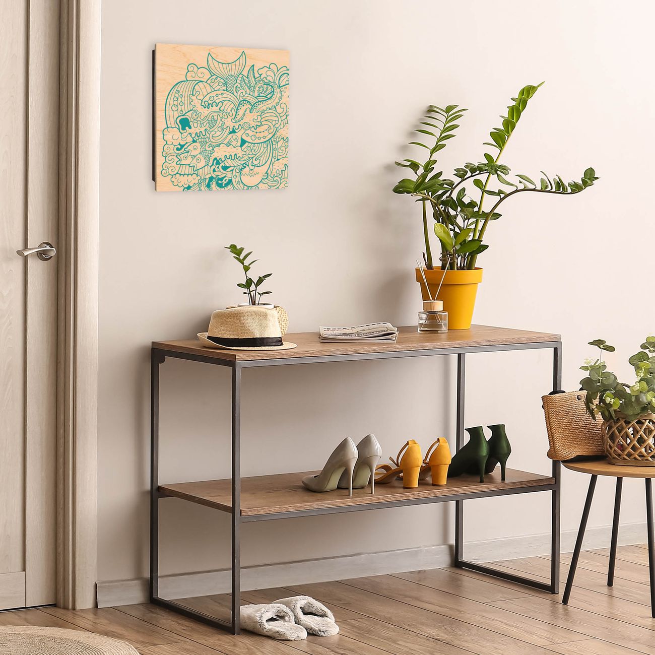 Bringe Ordnung und Eleganz in deinen Eingangsbereich mit dem banjado Schlüsselkasten Motiv Motiv Tiefsee. Die moderne Schlüsselbox kombiniert funktionales Design mit hochwertiger Verarbeitung und wird so zu einem echten Hingucker in Flur, Büro oder Ferienwohnung. ✅ Stilvolle Schlüsselaufbewahrung mit moderner Holzfront im Motiv Motiv Tiefsee Der Design-Schlüsselkasten Motiv Motiv Tiefsee bietet Platz für bis zu 50 Schlüssel, die auf 5 stabilen Reihen mit je 10 Haken übersichtlich verstaut werden. Mit seinen kompakten Maßen von 30 x 30 x 5 cm passt die Schlüsselbox perfekt auch in kleinere Räume. Der schwarz lackierte Korpus mit dem Scharnier auf der rechten Seite harmoniert mit der bedruckten Holzfront und fügt sich nahtlos in jedes Wohnambiente ein. Ob als Schlüsselorganizer für Zuhause oder als praktische Lösung für Büros, Praxen und Gewerbe - der banjado Schlüsselkasten sorgt für Ordnung und Übersicht. Durch die klare Strukturierung der Haken lassen sich auch viele Schlüssel problemlos verwalten. Die Schlüsselbox Motiv Motiv Tiefsee zur Wandmontage wird inklusive Befestigungsmaterial geliefert und ist schnell angebracht. So hast du deine Schlüssel jederzeit griffbereit und zugleich stilvoll verstaut. Mit diesem banjado Schlüsselkasten Motiv Motiv Tiefsee kombinierst du praktische Aufbewahrung mit stilvollem Wohndesign. Ob privat oder geschäftlich - die Schlüsselbox sorgt für mehr Ordnung, Übersicht und ein wohnliches Ambiente.Vorteile im Überblick