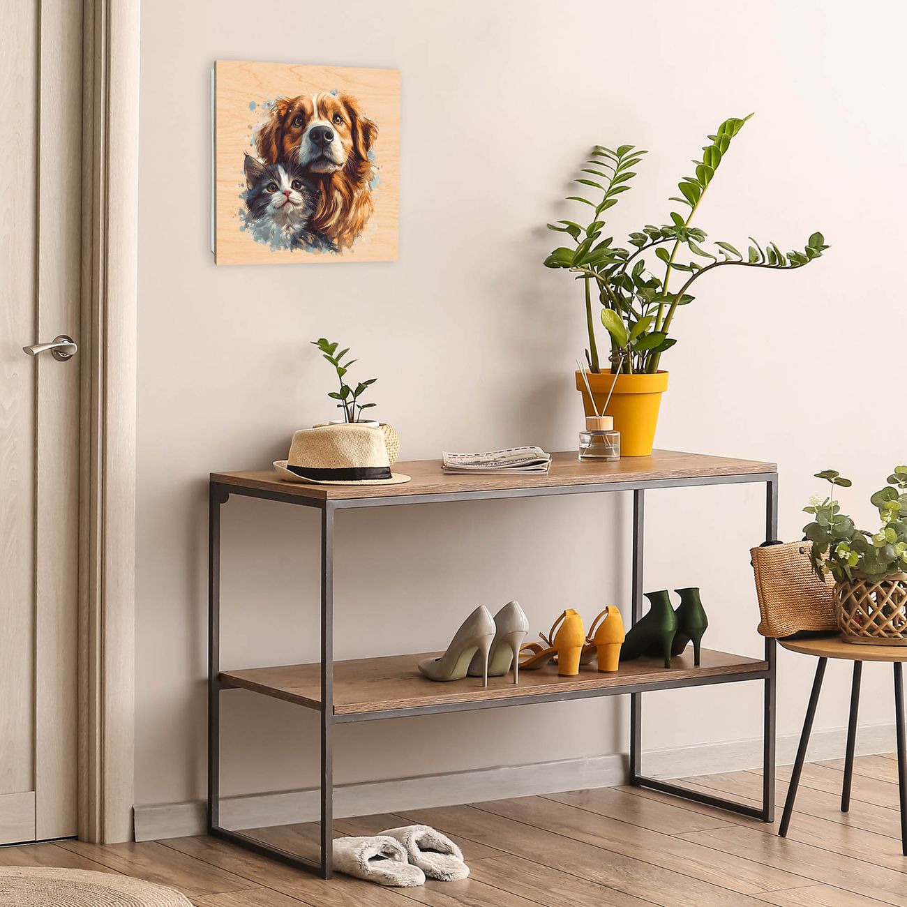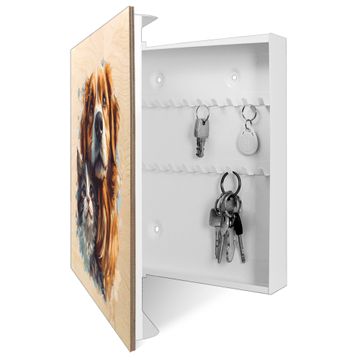 Schlüsselkasten mit Holzfront - Design Schlüsselbox Motiv Tierische Begleiter